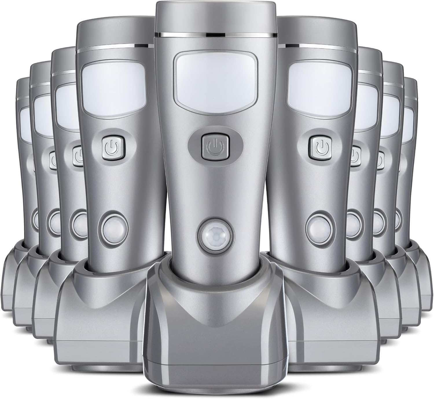 - 4 In 1 Function: rechargeable flashlights are 4 in 1 function; This light can be applied as LED motion sensor nightlight, emergency light, flashlight and rechargeable torch; Plug in the socket and you can use it as a night light; But if you just want to use it as a flashlight, you just need to turn on the button on the top of the light; It is especially handy for use during outdoor camping, nighttime events