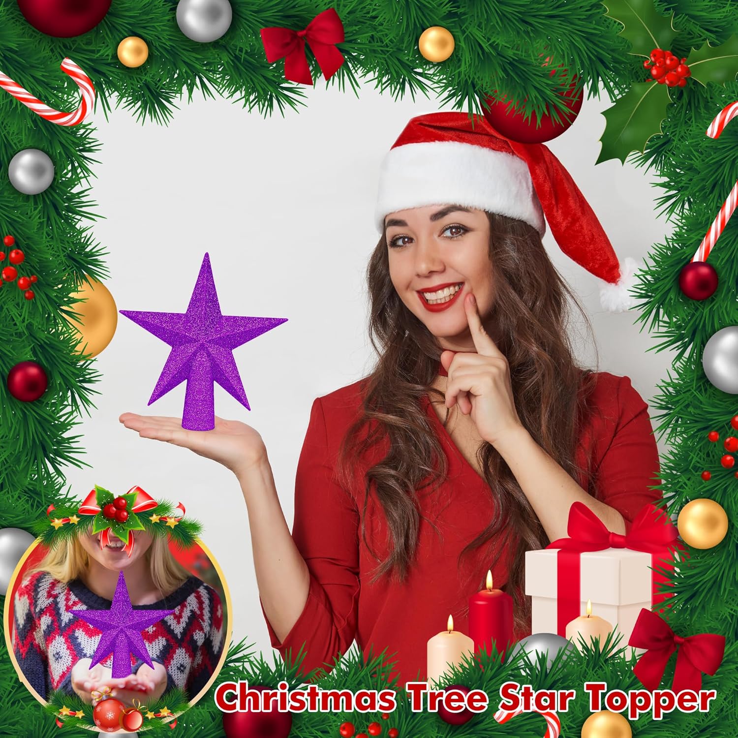 Christmas Tree Ornament, 6" Purple Star Christmas Tree Topper Decorations, Xmas Glitter 3D Bethlehem Star Tree Ornament, Waterproof Holiday Christmas Tree Topper Accessories for Home Outdoor