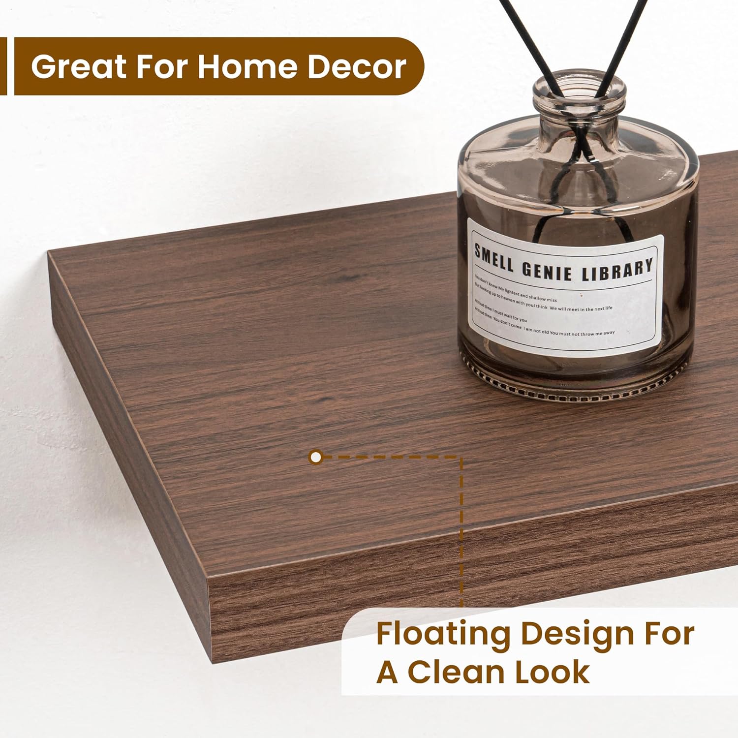 Fun Memories 40" Rustic Wood Floating Shelves with Invisible Brackets for Storage & Decor, Deep Wall Mounted Shelves for Bathroom, Kitchen, Living Room (Walnut, Set of 2)