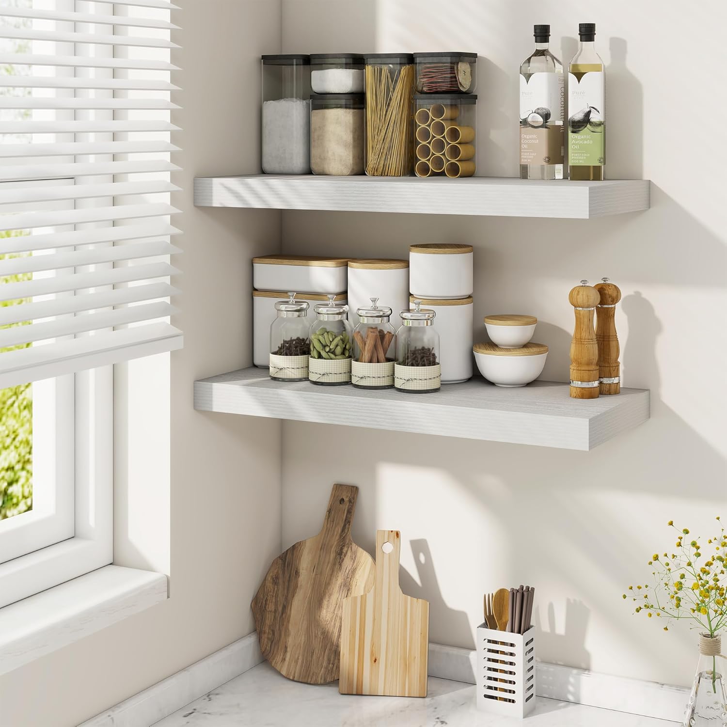 - Timeless Design for Any Room: Elevate your dƩcor effortlessly! The classic retro texture of these floating shelves complements bathroom, bedroom, kitchen, living room or even office space. Neutral tones blend with existing furniture, adding warmth without clashing