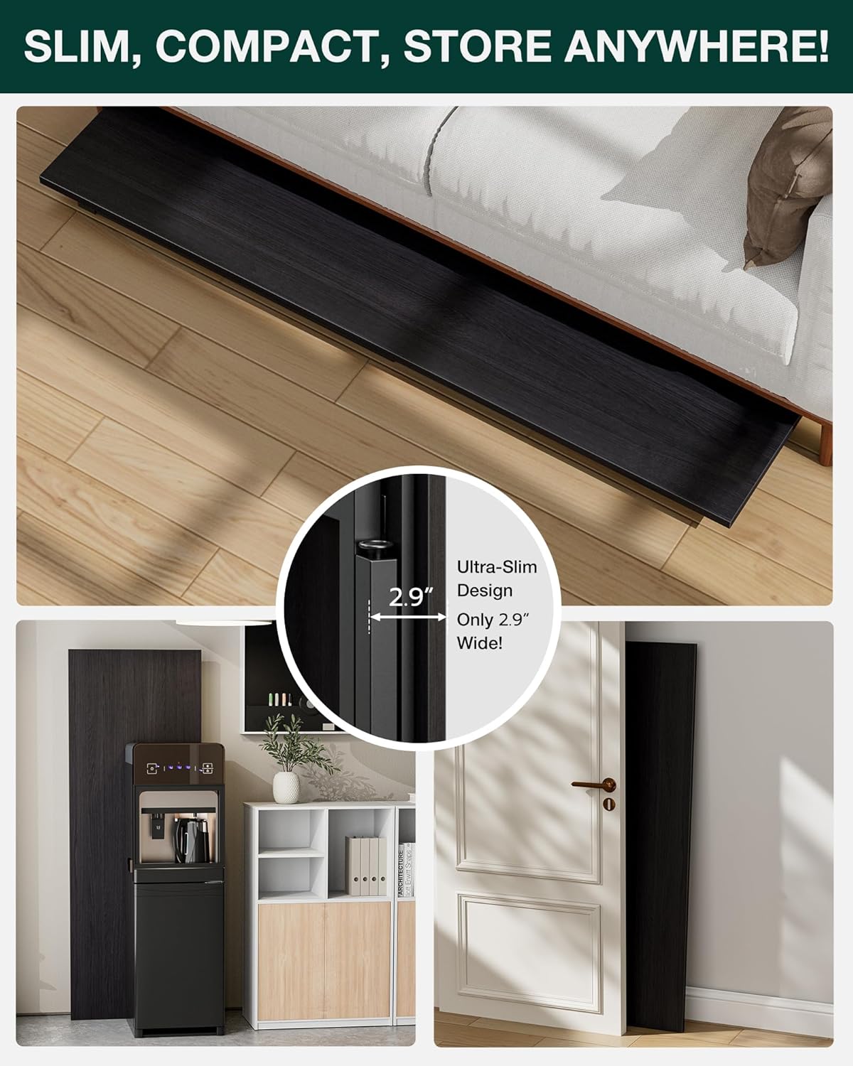 - 👍𝗙𝗢𝗟𝗗𝗦 𝗙𝗟𝗔𝗧 𝗪𝗜𝗧𝗛 𝗦𝗣𝗔𝗖𝗘-𝗦𝗔𝗩𝗜𝗡𝗚 𝗦𝗧𝗢𝗥𝗔𝗚𝗘 — With a folded thickness of only 2.9 inches, this desk fits easily under beds or behind doors. Lightweight and compact, it’s perfect for small-space living or temporary setups like trade shows and pop-up workstations