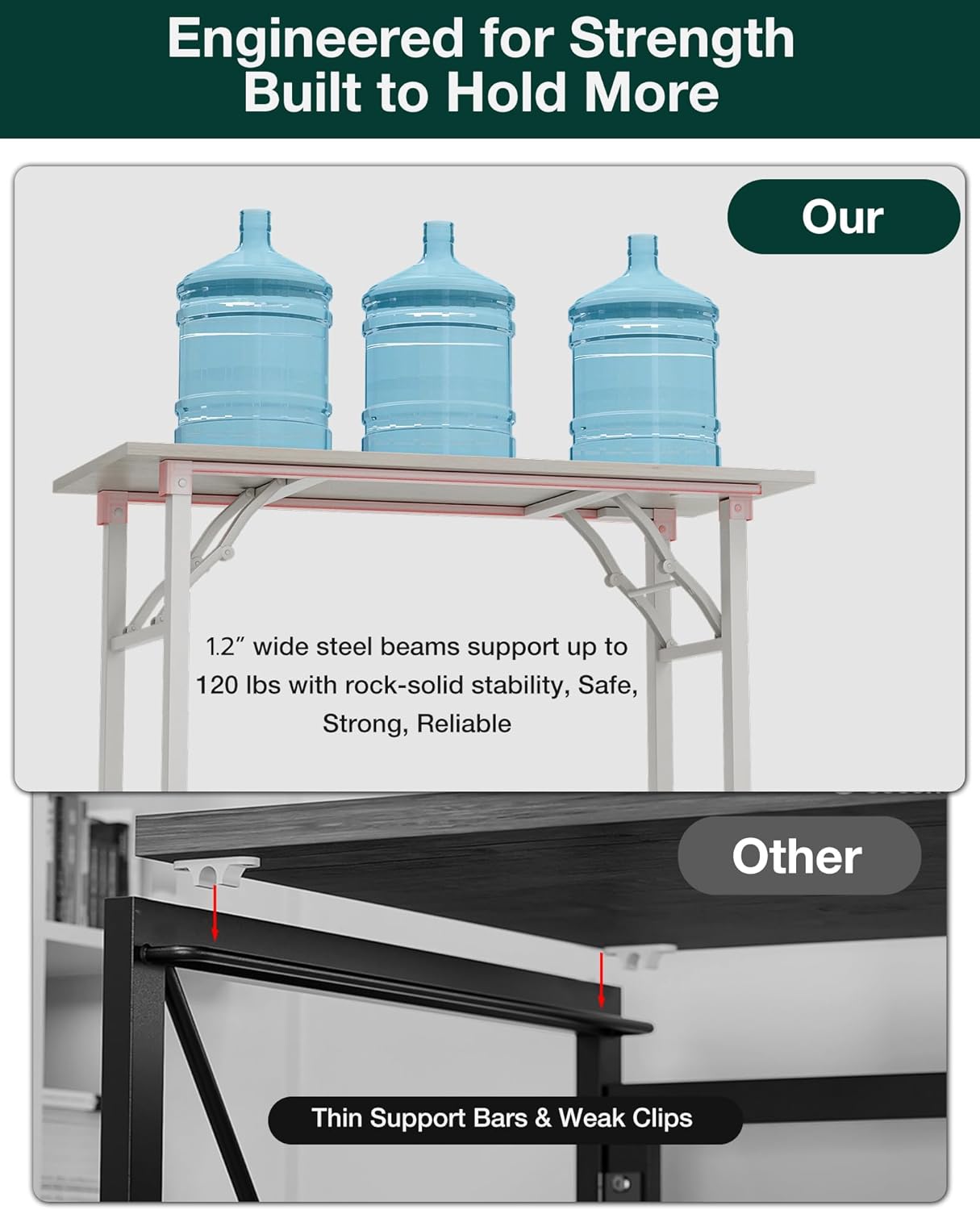 - 👍𝗙𝗢𝗟𝗗𝗦 𝗙𝗟𝗔𝗧 𝗪𝗜𝗧𝗛 𝗦𝗣𝗔𝗖𝗘-𝗦𝗔𝗩𝗜𝗡𝗚 𝗦𝗧𝗢𝗥𝗔𝗚𝗘 — With a folded thickness of only 2.9 inches, this desk fits easily under beds or behind doors. Lightweight and compact, it’s perfect for small-space living or temporary setups like trade shows and pop-up workstations