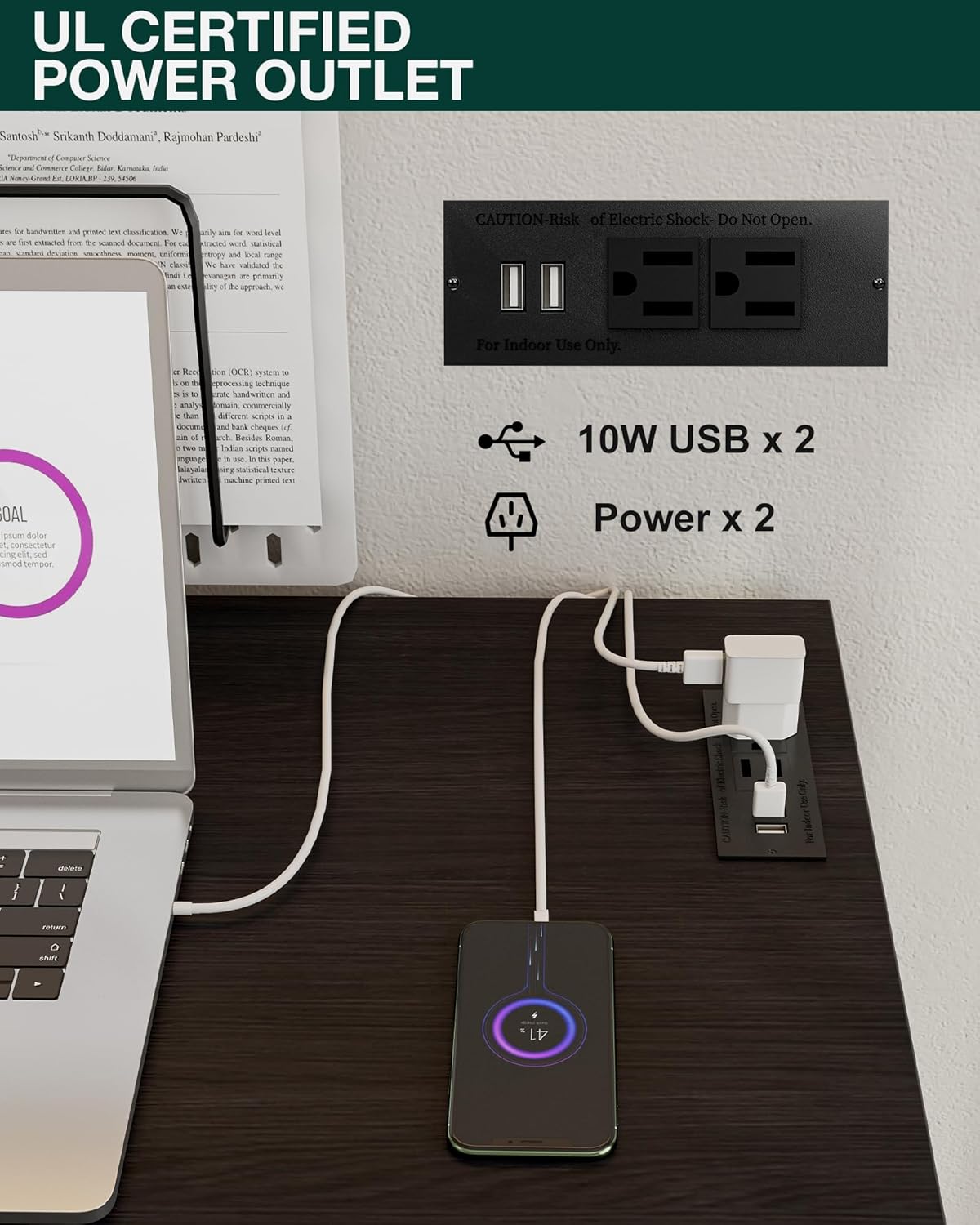 - 👍𝗜𝗡𝗧𝗘𝗚𝗥𝗔𝗧𝗘𝗗 𝗣𝗢𝗪𝗘𝗥 𝗛𝗨𝗕 – 𝗖𝗛𝗔𝗥𝗚𝗘 𝗘𝗩𝗘𝗥𝗬𝗧𝗛𝗜𝗡𝗚 𝗔𝗧 𝗢𝗡𝗖𝗘 — Stay powered and productive with 2 built-in AC outlets and 2 USB ports—perfect for laptops, phones, tablets, and more. No more messy extension cords or reaching for distant plugs; this smart design keeps all your devices charged and your workspace neat