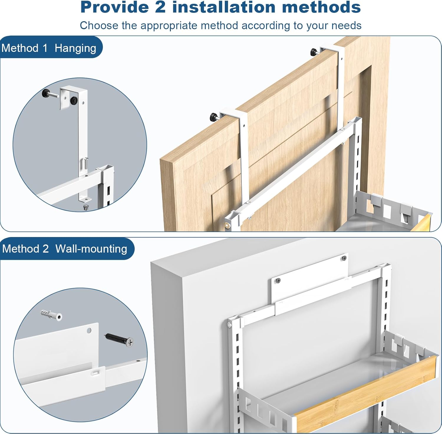- 【Multifunctional and Multipurpose】Scattered bottles and jars on the wall receive, make the article such as kitchen, bathroom receive easily, hang namely. Door hanging and wall hanging are available. Used for the kitchen, bedroom, bathroom and other scenes to receive, let your home become neat and beautiful