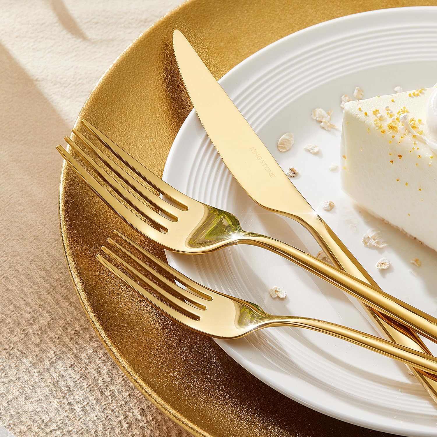 KINGSTONE Silverware Set, 20-Piece Flatware Set Cutlery Set Premium 18/10 Stainless Steel, Tableware Include Forks Knives Spoons for Home Kitchen Restaurant Wedding, Dishwasher Safe, Gold