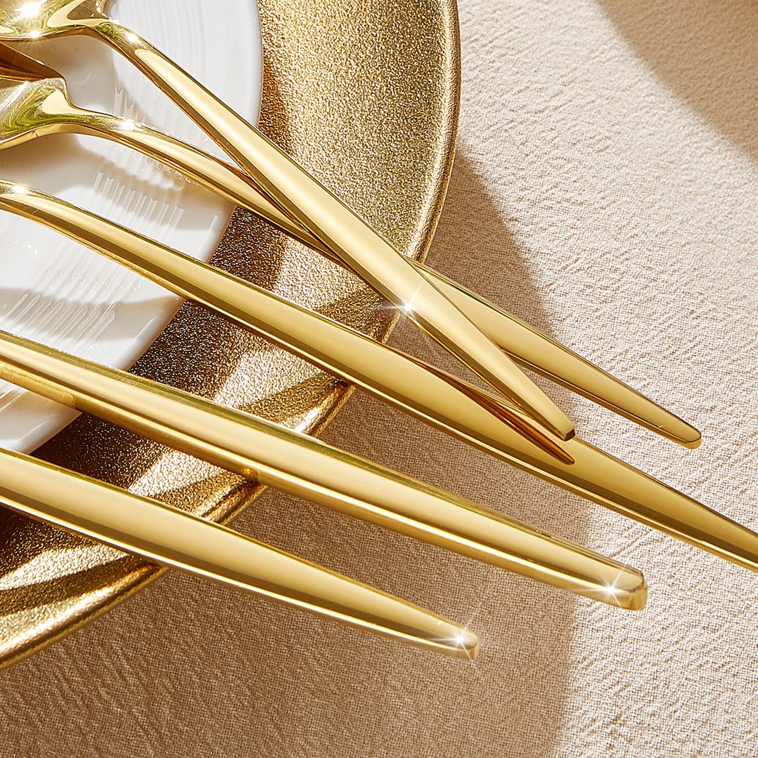 KINGSTONE Silverware Set, 40-Piece Flatware Set Cutlery Set Premium 18/10 Stainless Steel, Tableware Include Forks Knives Spoons for Home Kitchen Restaurant Wedding, Dishwasher Safe, Gold