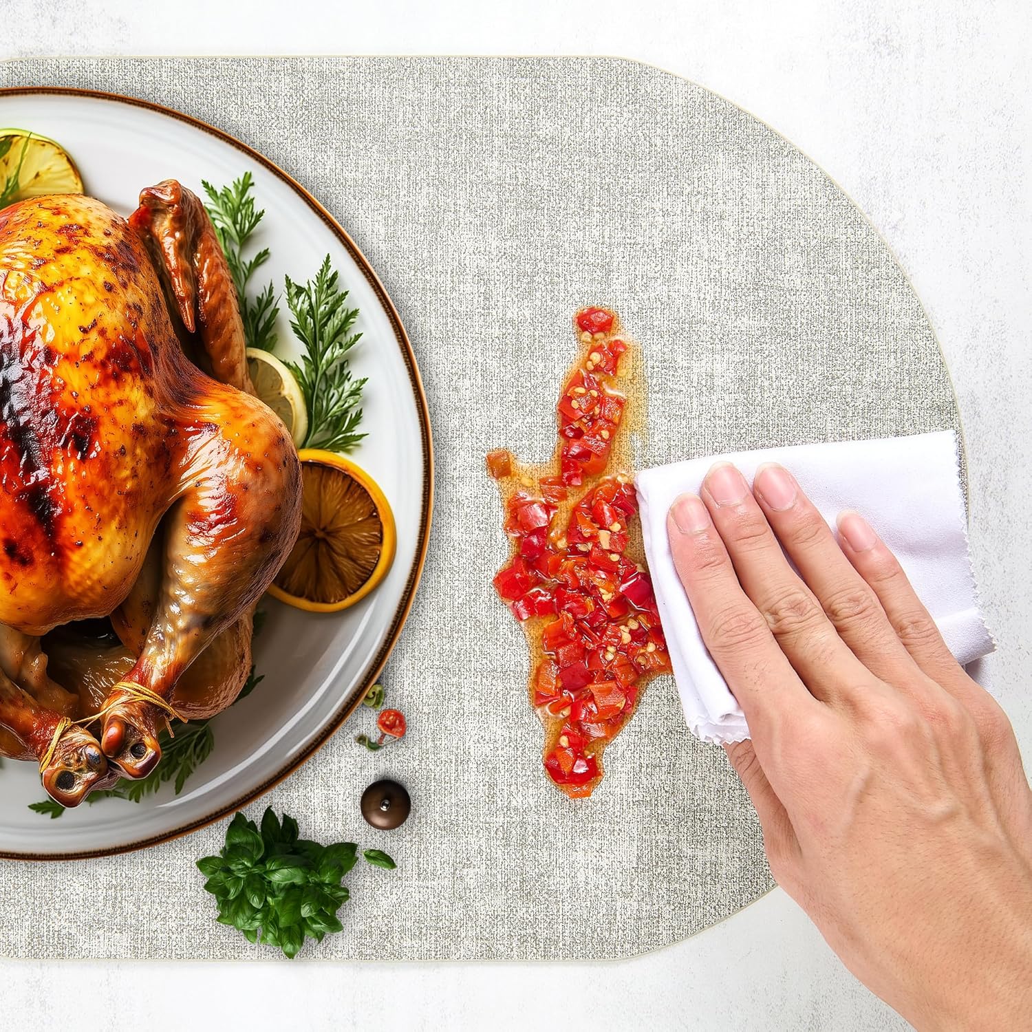 - 【Easy to Clean & Store】DOLOPL wipeable placemats are waterproof, oil-resistant, and stain-resistant—just wipe them clean with a damp cloth, and they’re ready to use again. The soft material allows you to roll them up for compact storage without creasing, and they lay perfectly flat when unrolled.