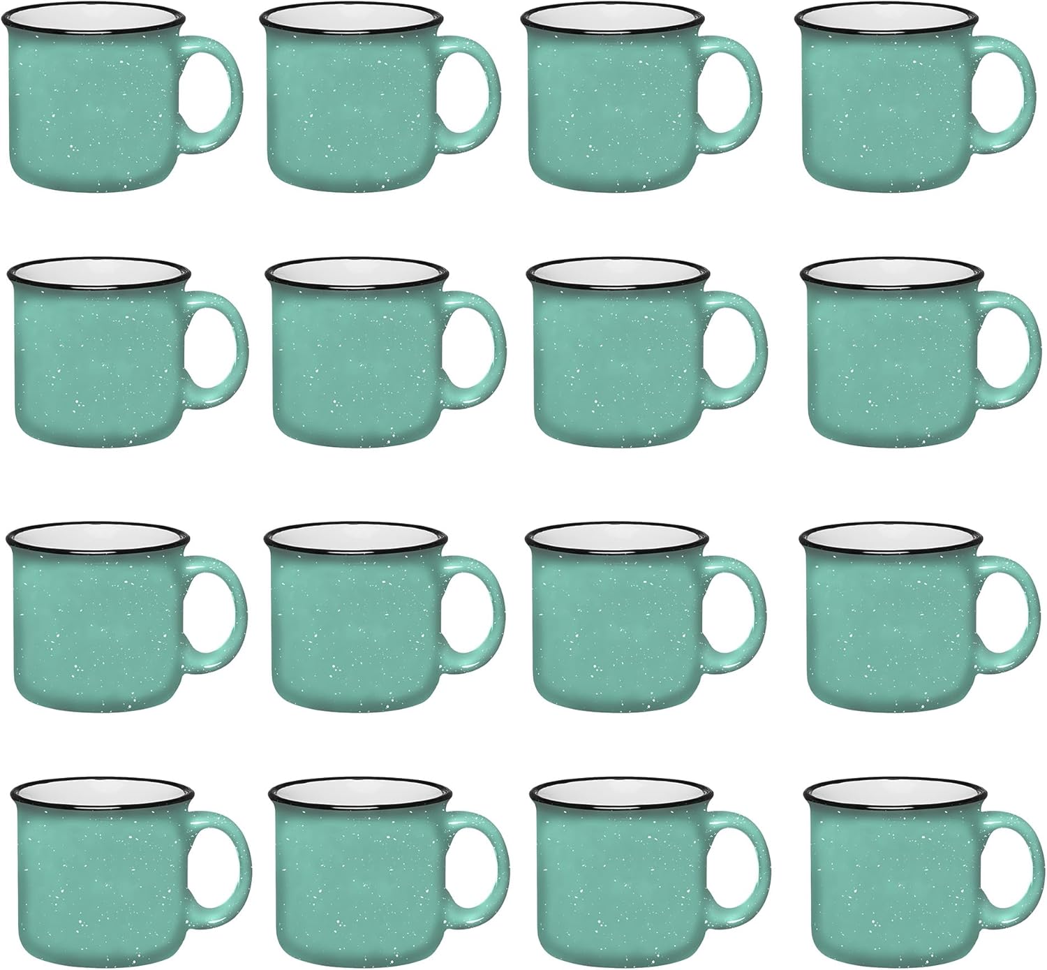 Set of 16 Ceramic Campfire Mugs – 15 Oz, Teal – Coffee & Tea Cups for Home, Work, Travel, Camping – Customizable, Great for DIY, Events, Companies