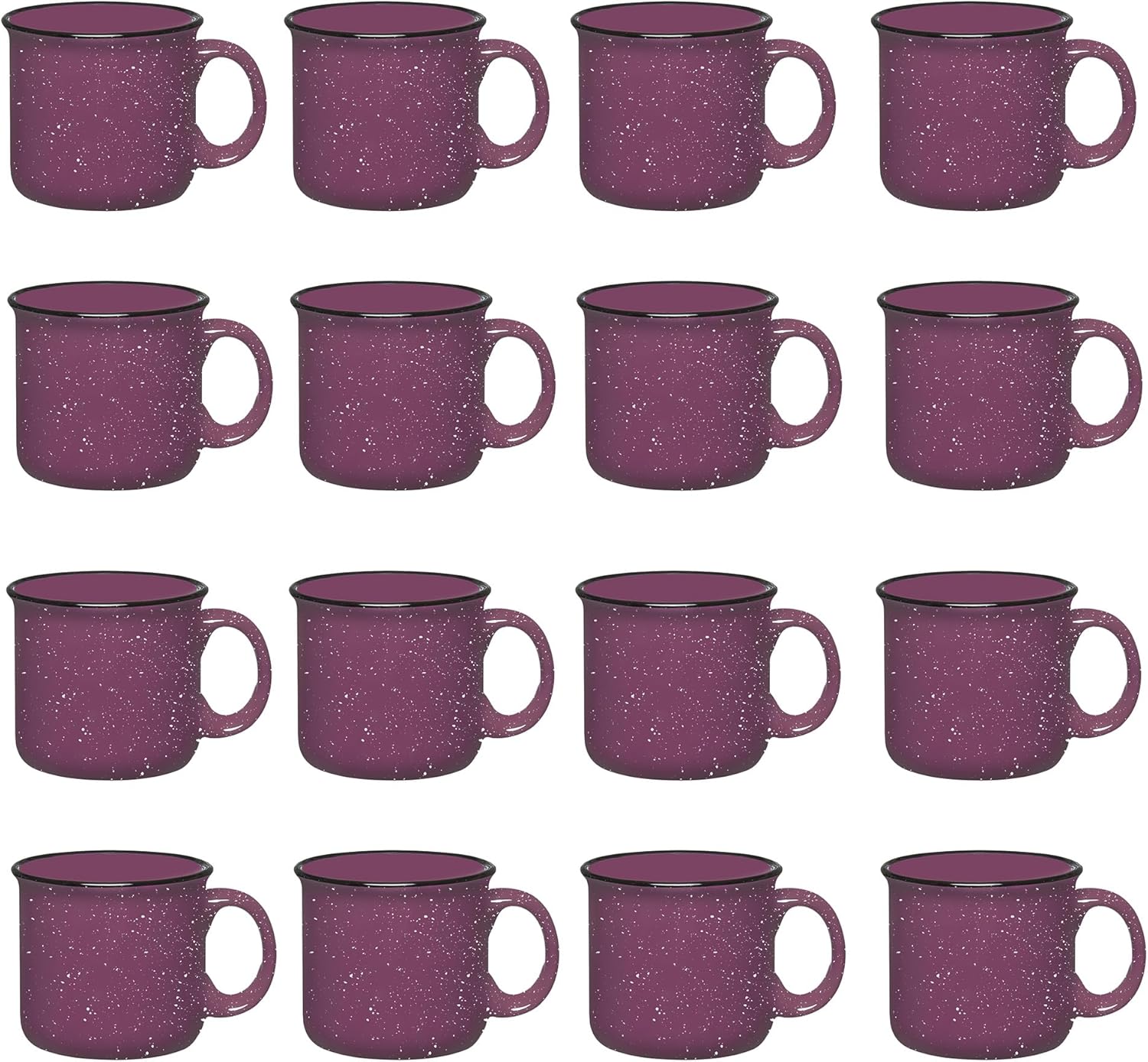 Set of 16 Ceramic Campfire Mugs – 15 Oz, Purple – Coffee & Tea Cups for Home, Work, Travel, Camping – Customizable, Great for DIY, Events, Companies