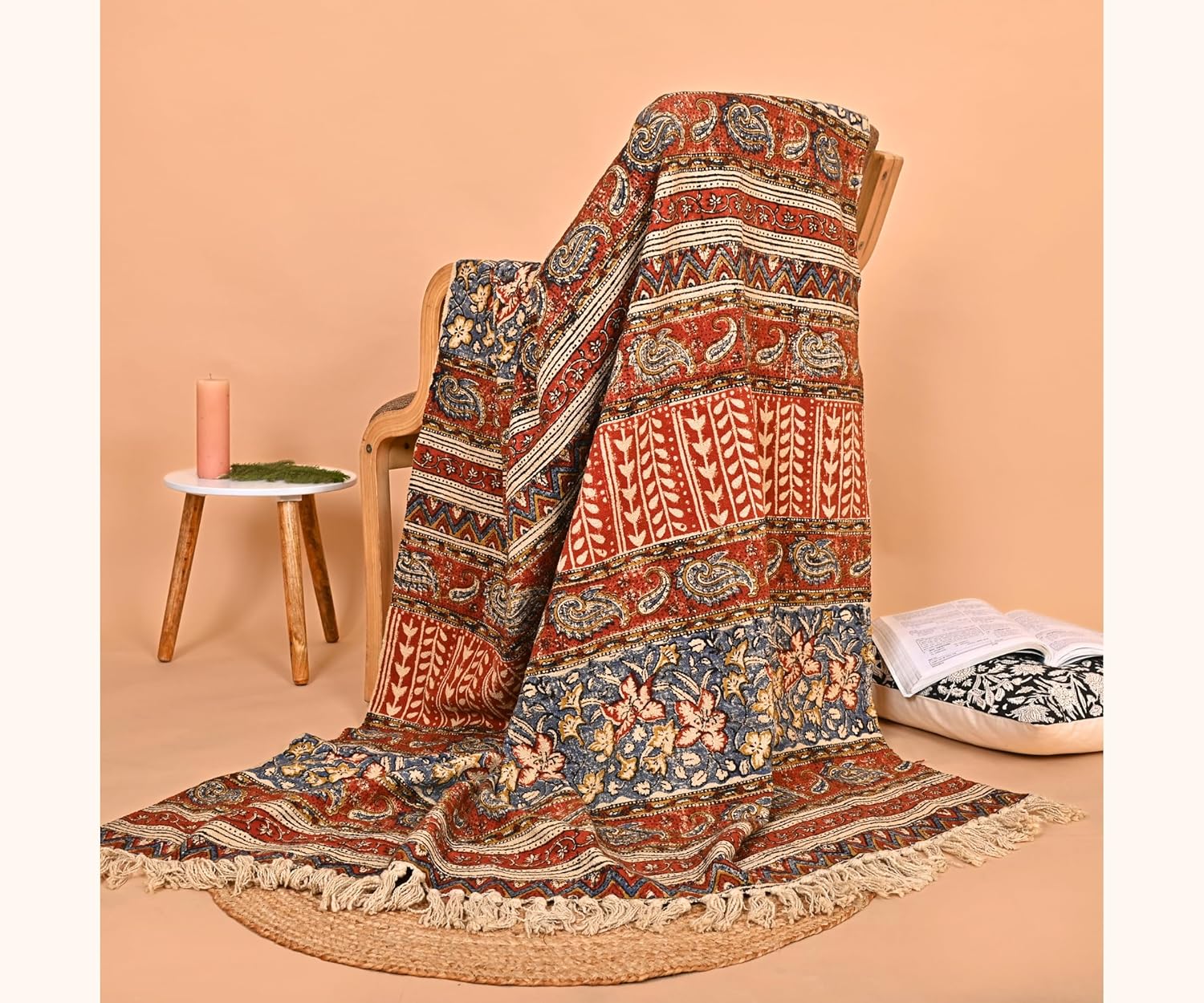 - Handcrafted Floral Block Print by SARVAA: This cotton throw features a hand-applied Indian block print, showcasing delicate floral patterns that add a warm, artisanal touch to any spaceâfrom bedrooms to cozy reading corners.