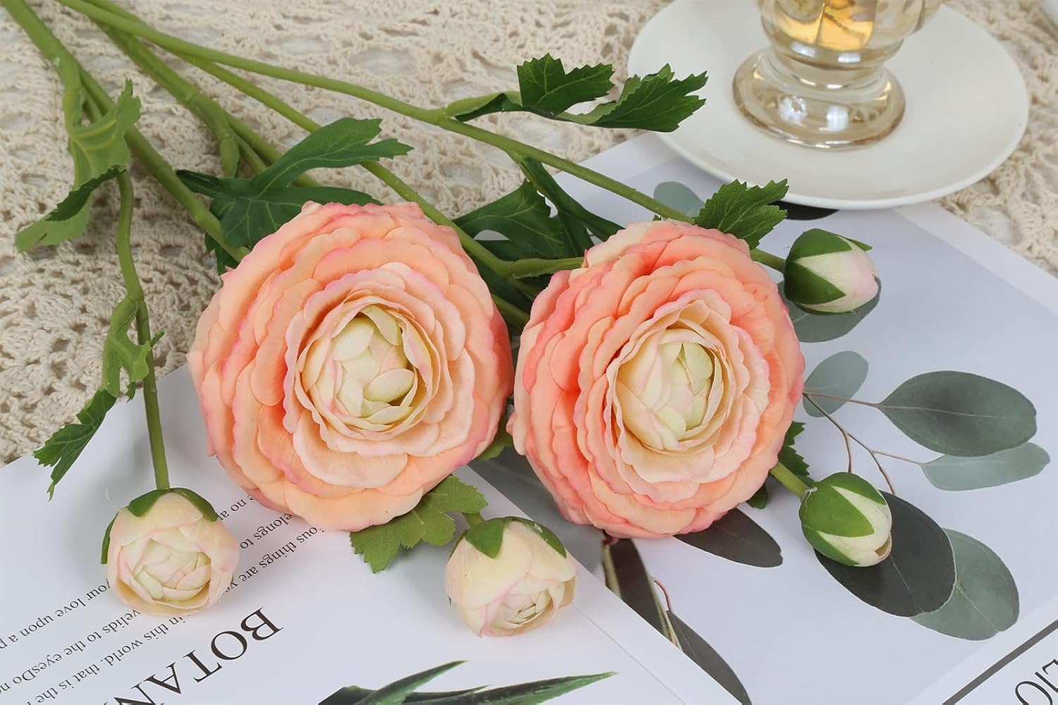 - Package Details: Each set include four 19-inch (49cm) ranunculus artificial flowers. Features handcrafted ranunculus heads per stem, crafted from premium latex that replicates the delicate veining of fresh flowers