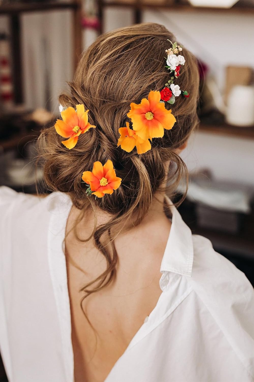 - Quantity and Size: Packed 5PCS orange cosmos artificial flowers. Total approx. 24.5inches/62cm height, bigger daisy flower 3.15ā/8cm, smaller 2.36'' /6cm, cosmos bud 1.18ā/3cm. Each daisy flowers artificial wildflowers set with 4 large flower heads, 1 small and 1 bud, total with 30 flowers heads. The long stem artificial flowers is ideal for your tall flowers for floor vase floral arrangements