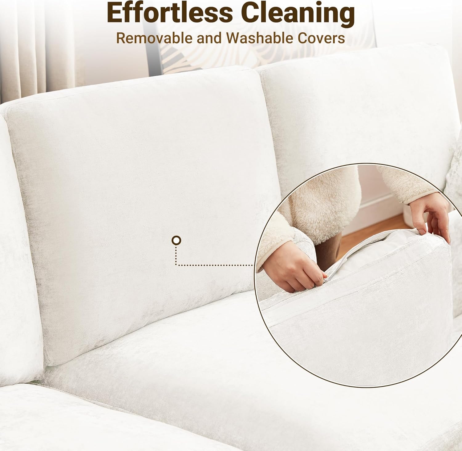 - Effortless Maintain - This white couch comes with detachable, machine-washable cushion covers for easy care. The high-quality foam cushions are compressed â simply unpack and allow 24-48 hours for them to fully expand. Helpful hint: Gently fluff and massage the cushions to speed up the process!