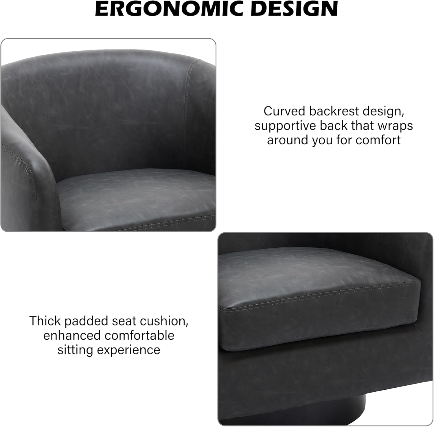 - 360 Degree Swivel Barrel Chair: This 360 degree round swivel chair designed for your leisure comfort. Heavy solid turntable, making it more stable and not wobbly