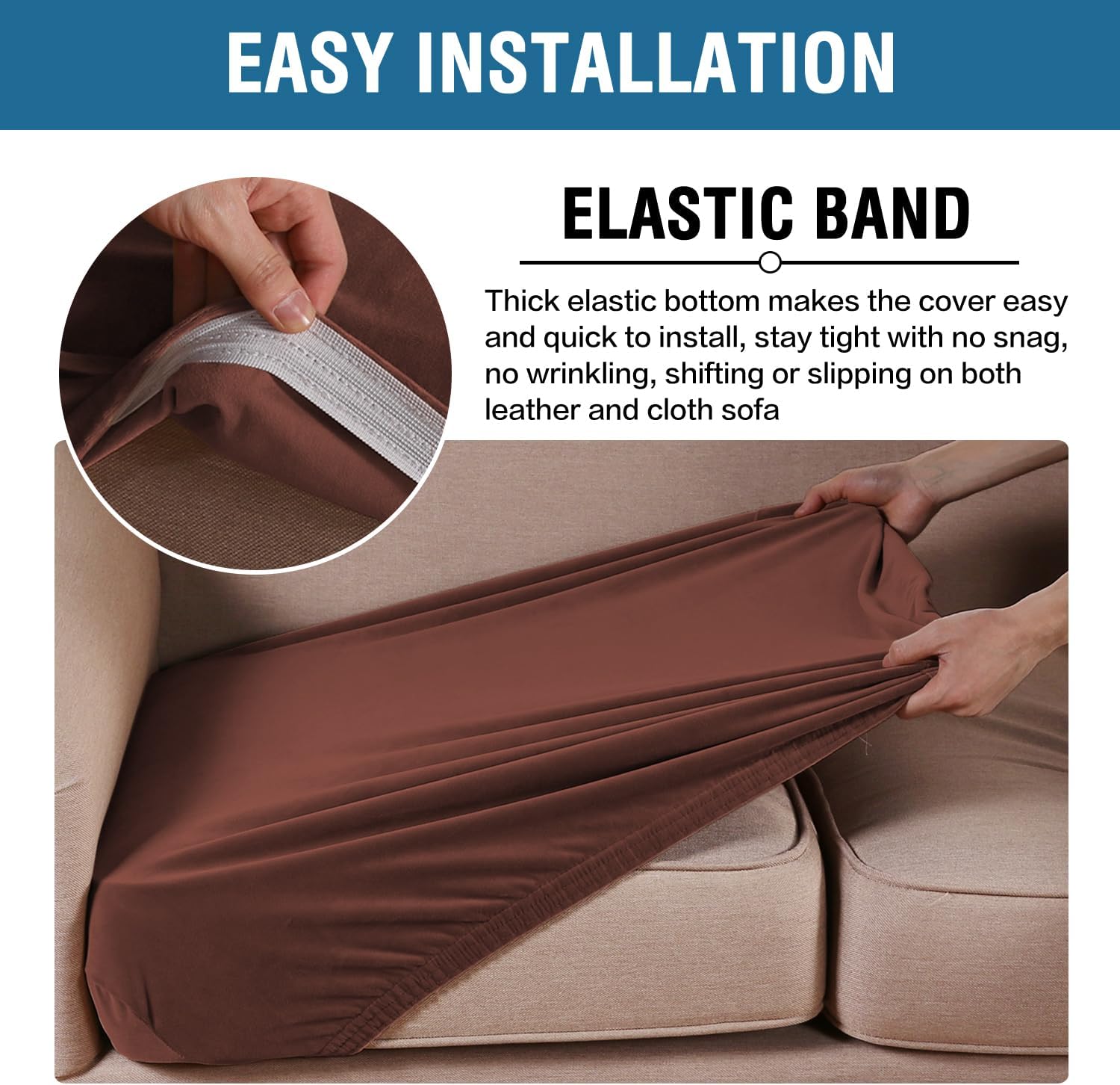 - STAY IN PLACE: Featuring non-skid thick elastic bottom, our cushion slipcover can stay tight with no snag, no wrinkling, shifting or slipping on both leather and cloth sofa. Check the installation guide carefully, it can be finished within 3 minutes by one person. It is very easy to put on and take down. (Installation Instructions Included)