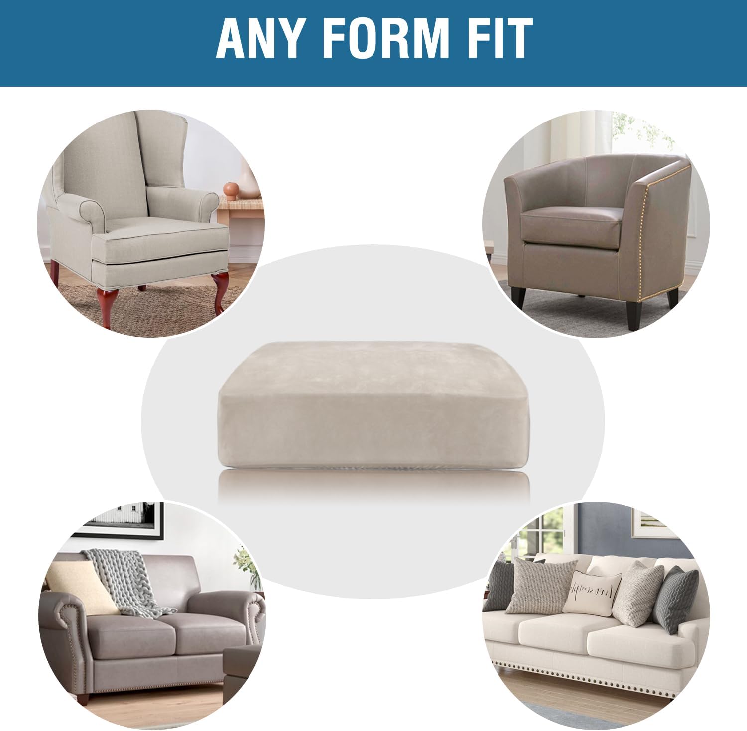 - ANY FORM FIT: Each cushion cover measures: 35-40" length, 21.6-30.5" width and 2-10" height. It's crafted from a unique extra stretchy fabric, perfect for regular square cushions, T-cushions and also L-cushions, used to cover not only the seat cushions of your sofa, but also the back cushions as long as they can be separated from the sofa