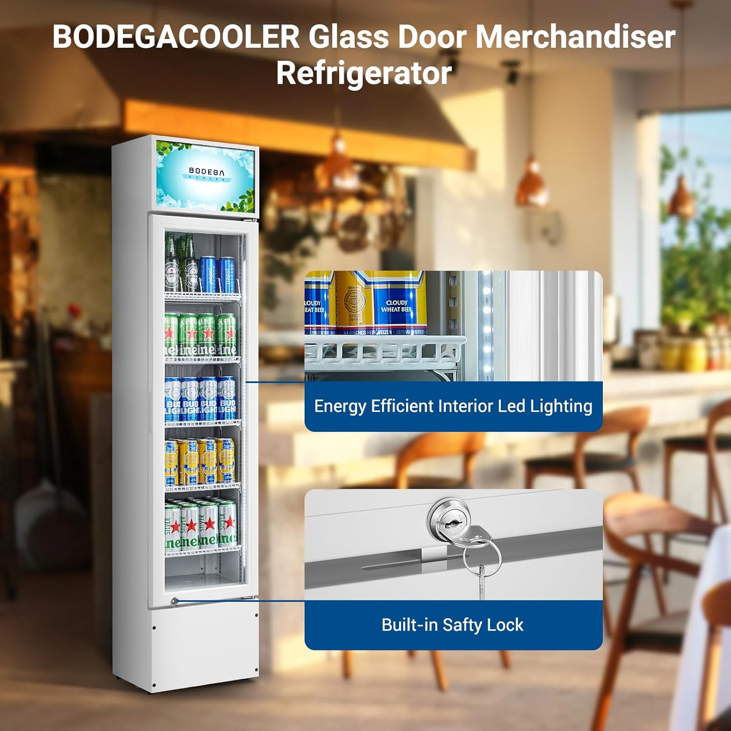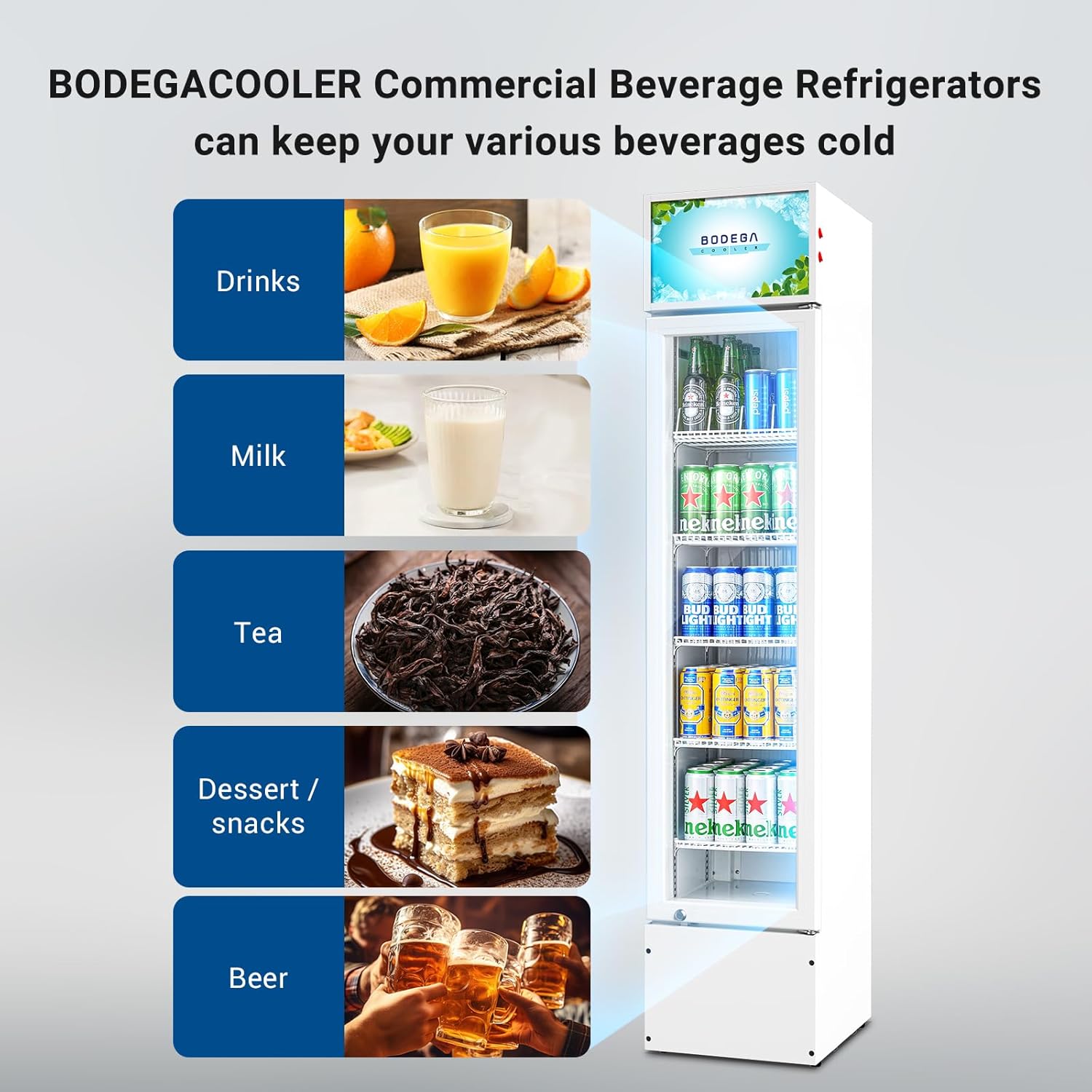 BODEGACOOLER 5.7 Cu.Ft Commercial Beverage Refrigerator,Commercial Cooler Refrigerators Glass Door Display Fridge for Bar,Drink,Tall Drink Cooler for Parties,Slim Single Door Display Fride