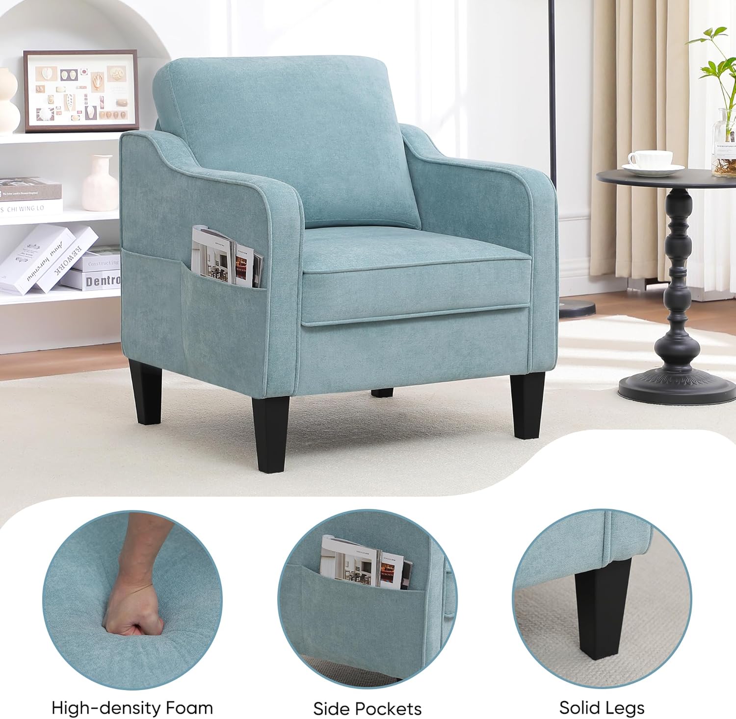 Accent Chairs Set of 2, Upholstered Living Room Chairs with Side Pockets, Mid Century Modern Reading Chair for Bedroom, Comfy Armchair Single Sofa Side Chair for Office, Small Room, Teal Green