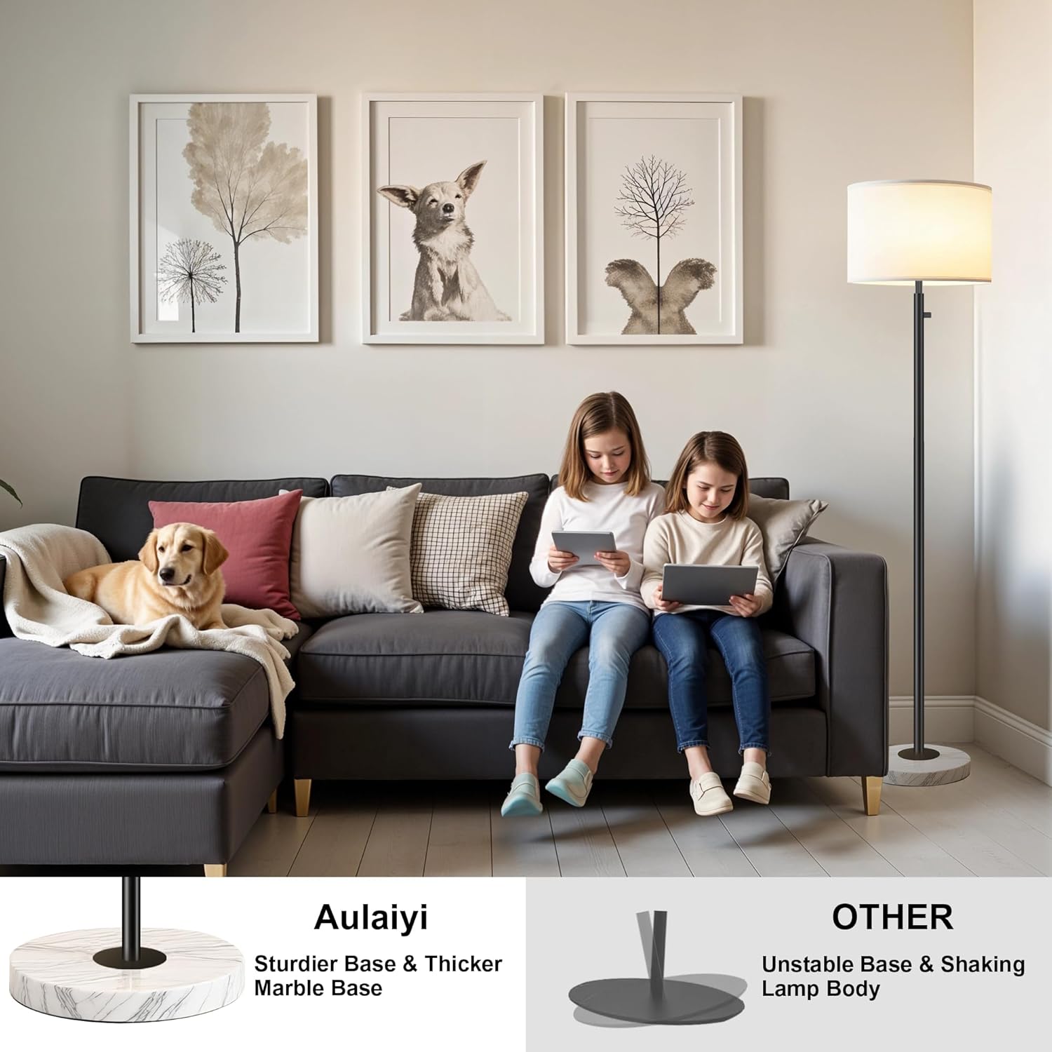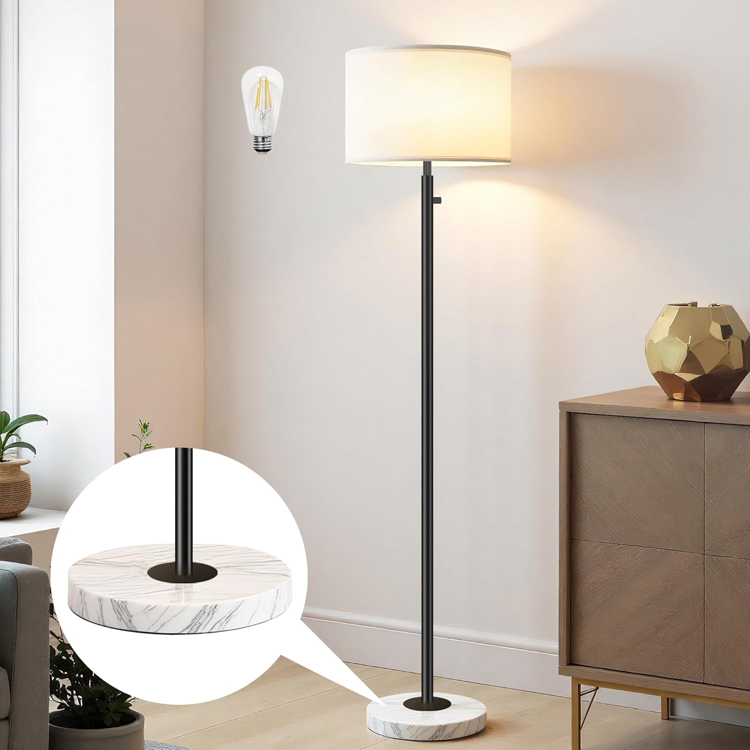 - Stable Marble Base & Space-Saving Design: Our floor lamp features a high-quality marble base for enhanced stability and added safety. This compact tall standing lamp fits easily in any corner or beside furnitureāideal for kids' rooms, next to bedside tables, office desks, nightstands, or sofas.
