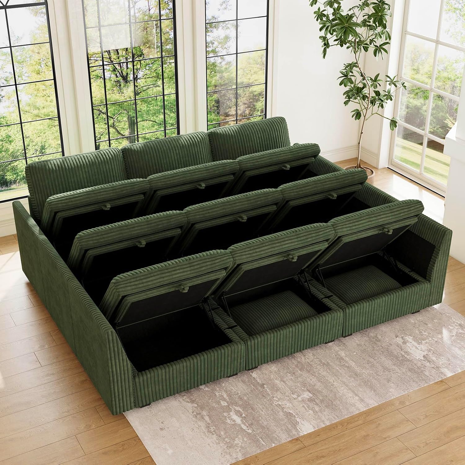 - Spacious Storage: Hidden storage under every Belffin module offers ample room for blankets, clothes, or daily essentials. Keep your living room neat and organized with a smart, space-saving design thatâs as practical as it is beautiful.