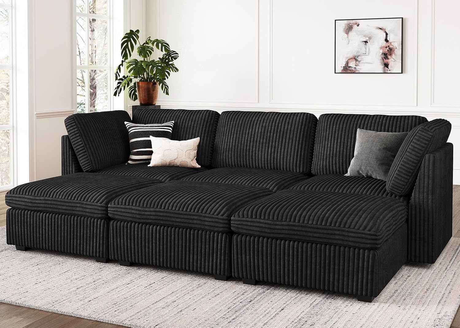 - Tool-Free AssemblyďźSetup is quick and hassle-freeâno tools required. Each module arrives in its own box, may arrive at different times, so just sit and wait for your perfect sofa to come together.