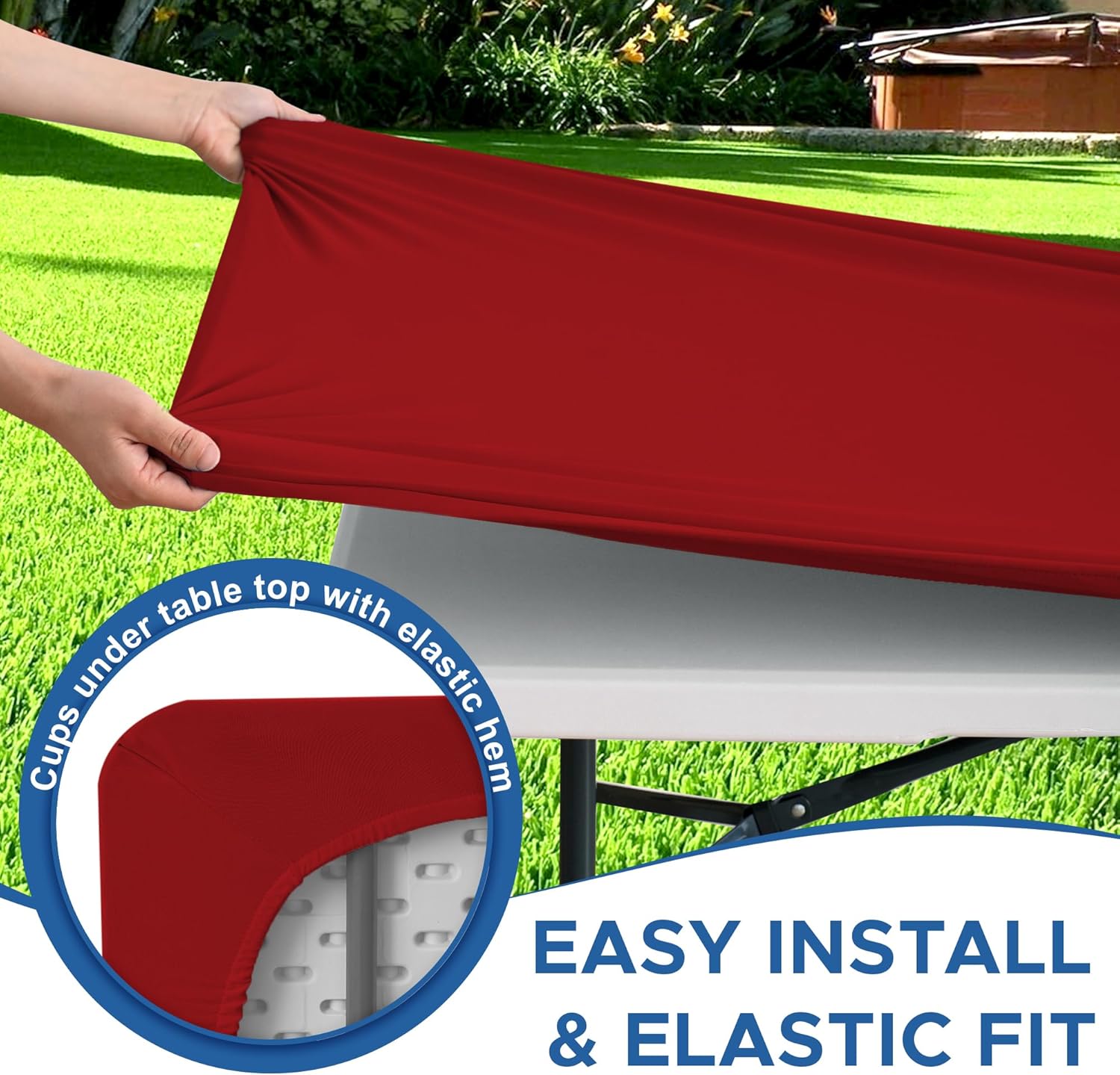 Fitted Tablecloth for 6 Foot Rectangle Tables-4 Pack Red Elastic Outdoor Picnic Table Cover-Spandex Stretch Folding Table Cloths 6 ft for Camping Dining Room Patio Kitchen Banquet Party