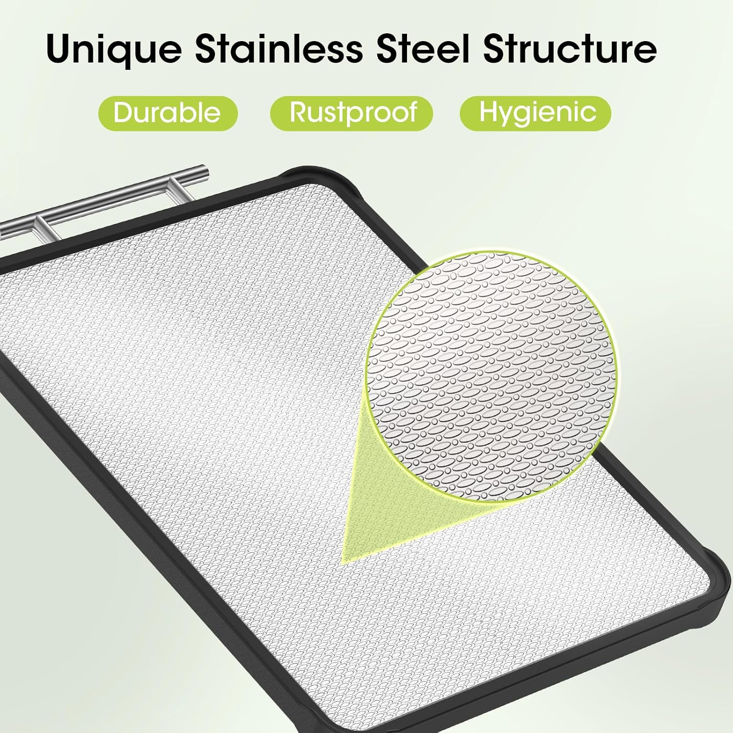 - 316 Stainless Steel – Scratch-Resistant & Made from premium 316 stainless steel, this cutting board resists deep knife marks and stains. Unlike wood or plastic, it offers a cleaner, more durable prep surface for raw meats and tough chopping tasks.