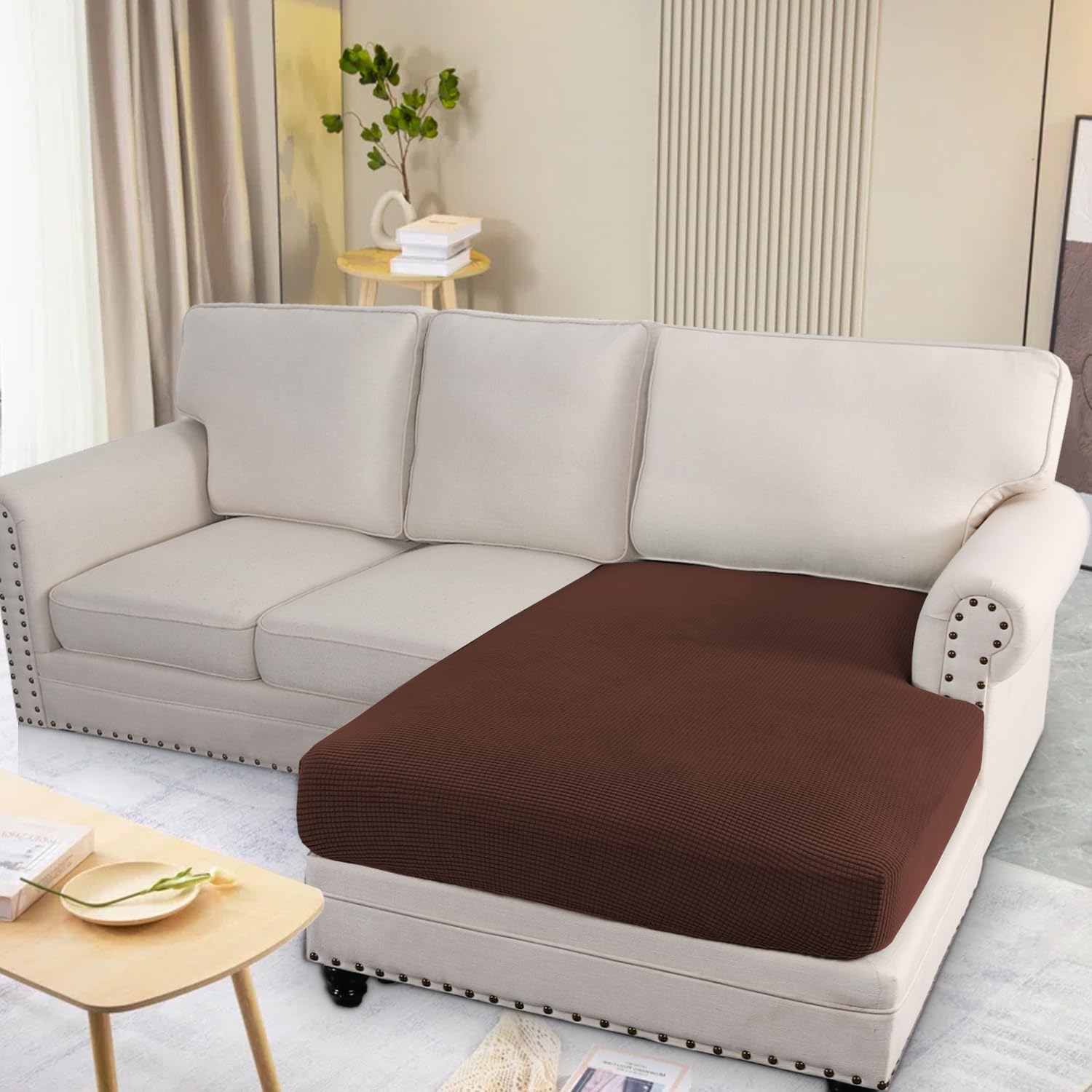 - GREAT FIT: Set of 1. This innovated cushion slipcover is crafted from durable and soft high stretch knitted jacquard fabric. Chaise Lounge Cover for Both Left/Right L Shaped Couch(fits up to 33-37 inch width, 55-61 inch depth, 3-8 inch thickness). Feature one-size-fits-most, kindly measure before ordering