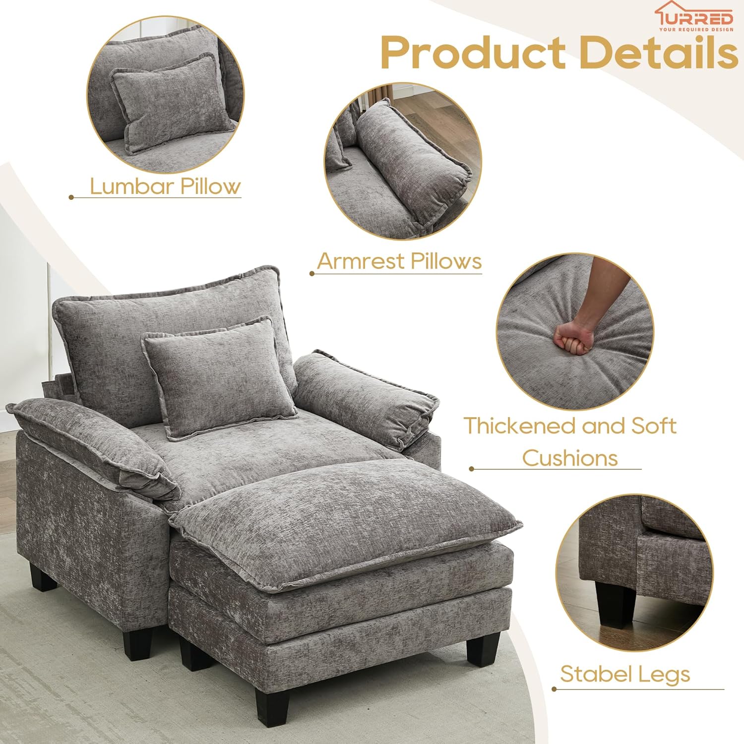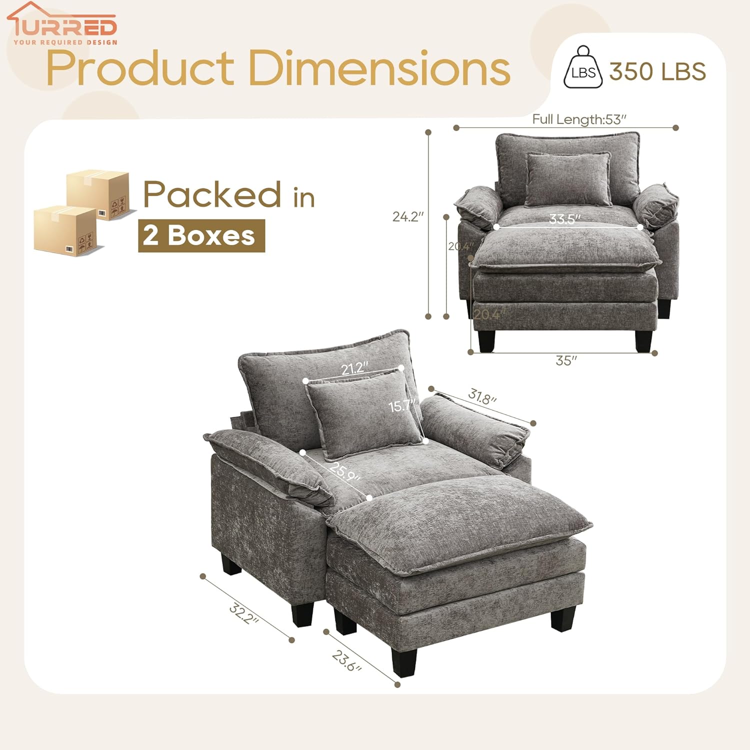 URRED Modular Sectional Sofa Comfy Cloud Couch, Modern Chenille Sofa Sleeper Deep Seat Couches with Ottoman/Pillows for Living Room (Gray, 53''- Ottoman)