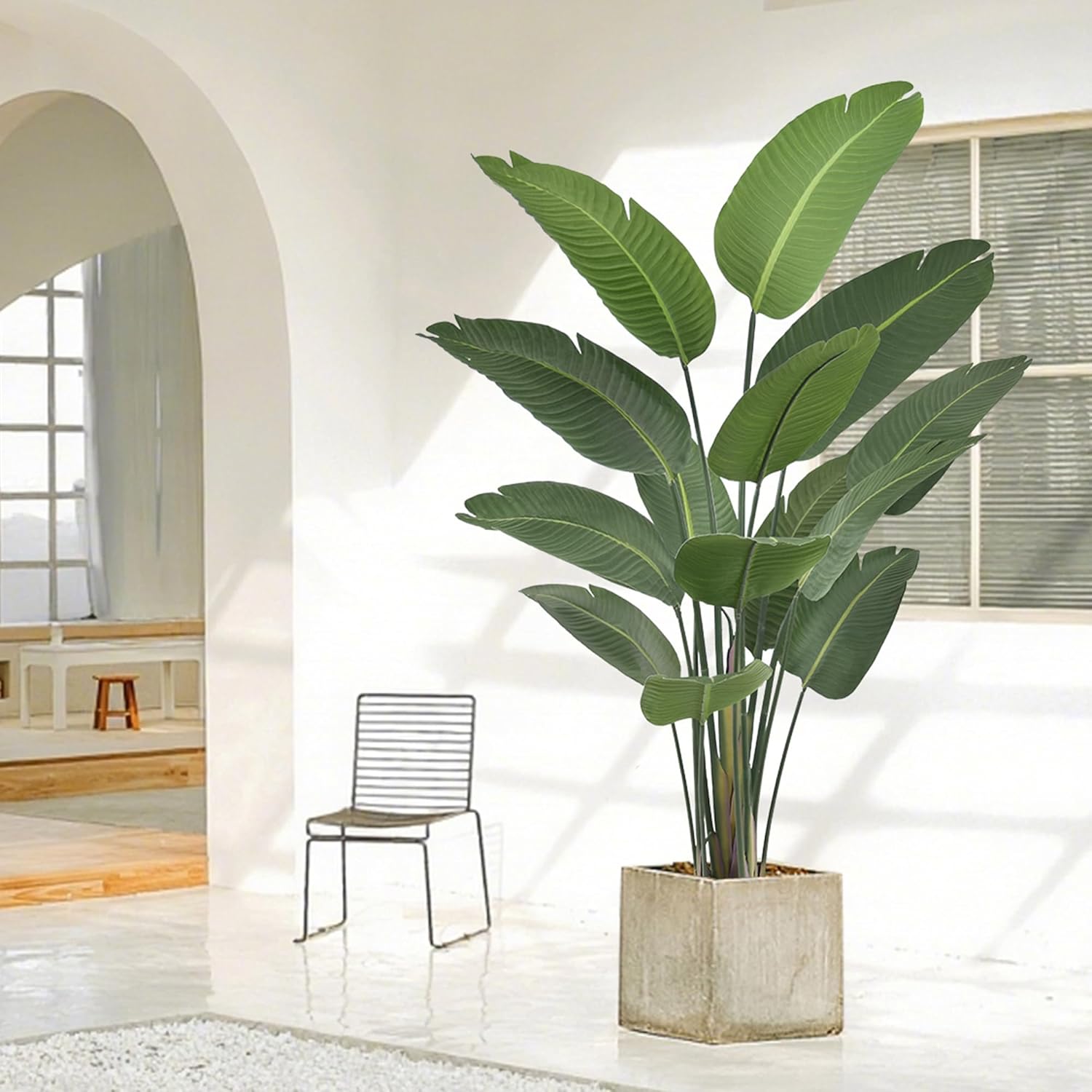 - Durable Material: Tall artificial bird of paradise tree is made of durable, high-quality materials, with up to 13 realistically textured leaves and lifelike trunks for a natural look.This tall fake tree resembles a giant tropical plant and is a great decoration for all seasons including Christmas, Thanksgiving and housewarming day