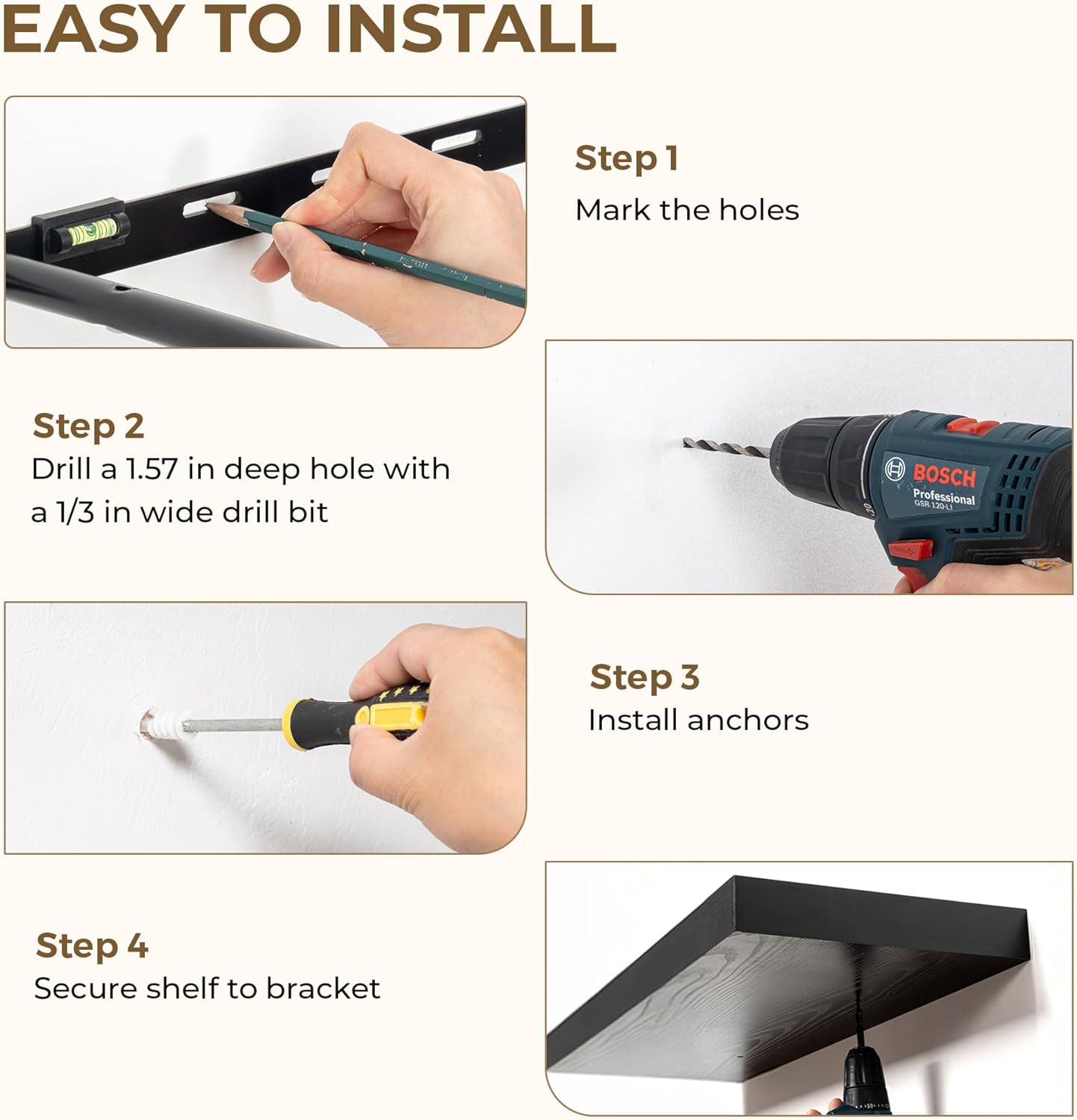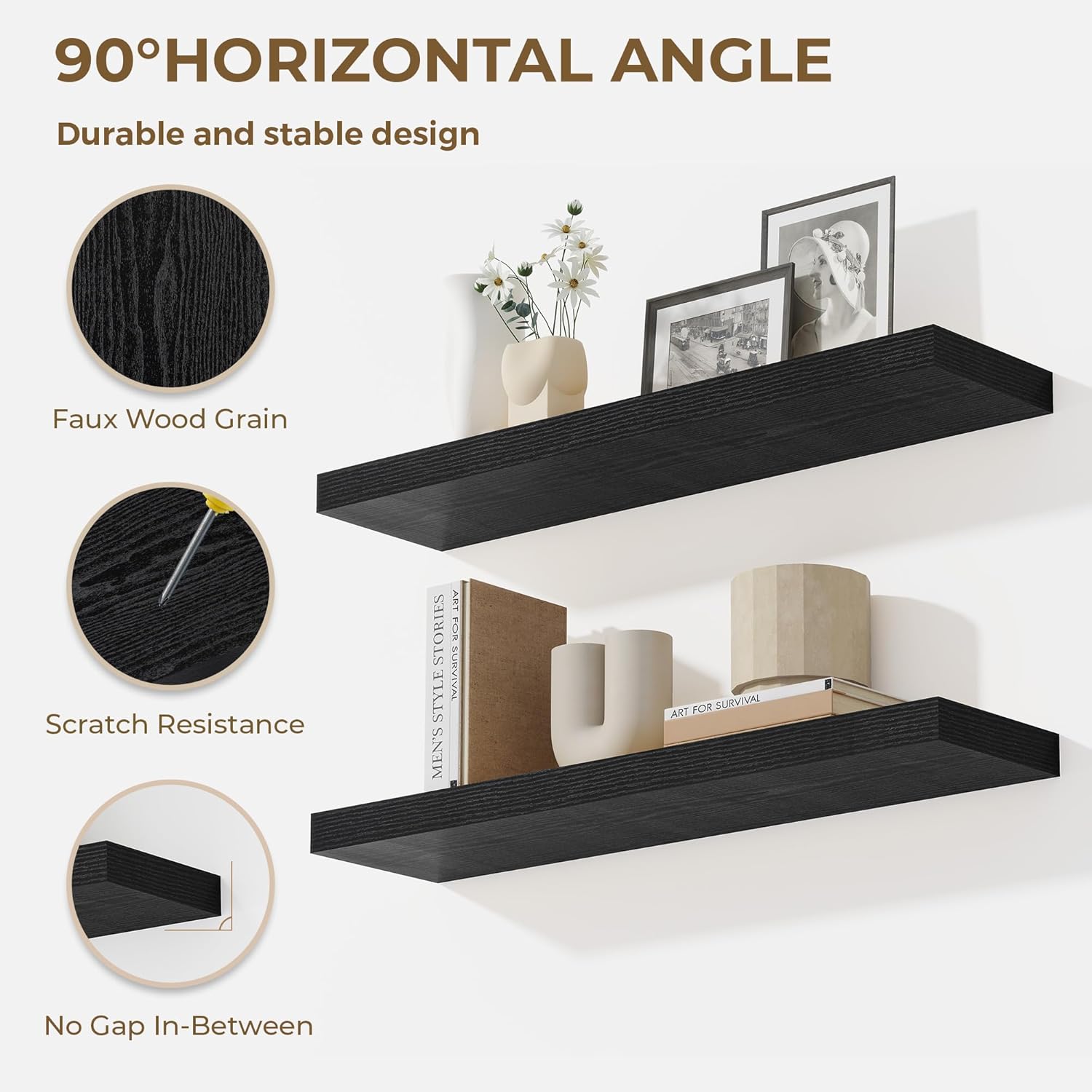 - Sturdy & Secure design: These 32-inch floating shelves feature a durable, concealed mounting bracket that offers reliable support for your belongings. Engineered for hassle-free and stable installation, each shelf includes all the required hardware to ensure a strong, wobble-free holdâperfect for showcasing your favorite decor, photos, or everyday items with confidence and style.