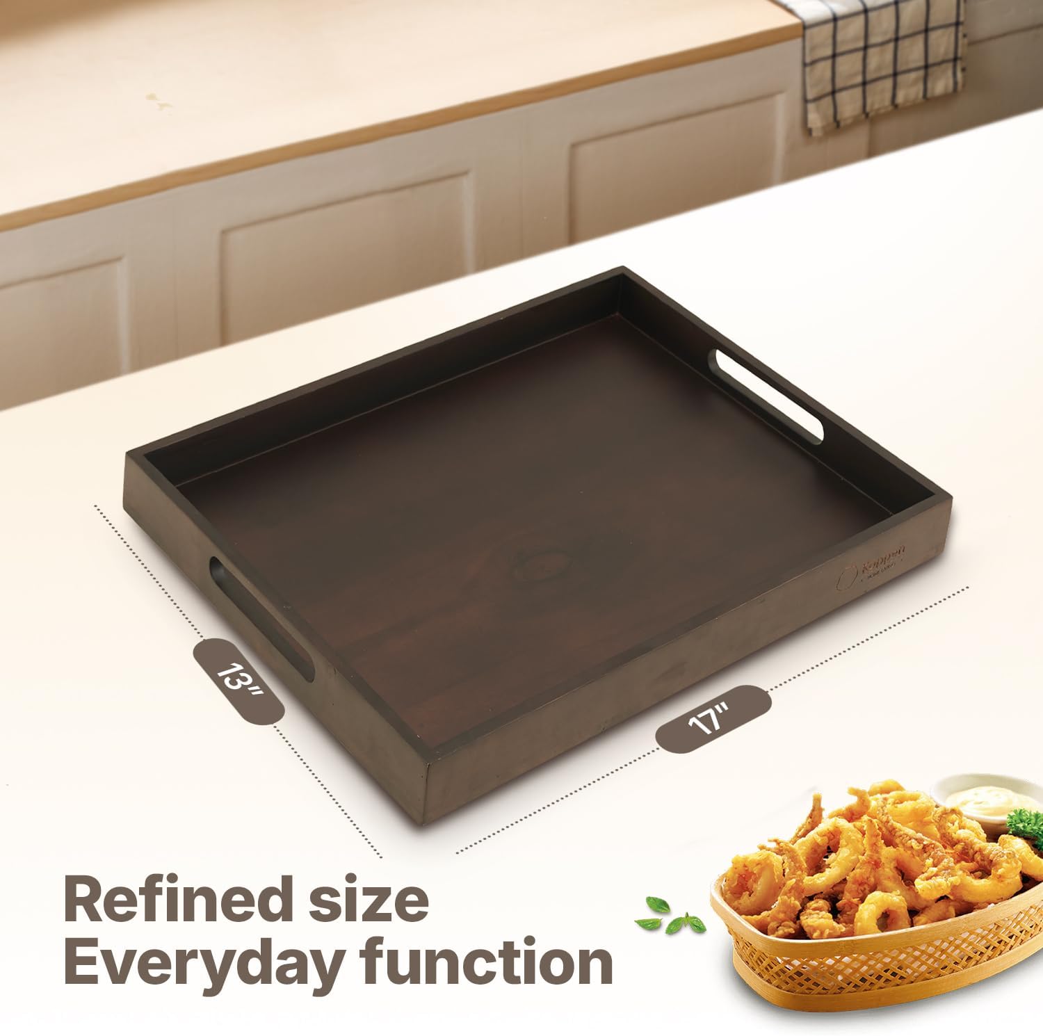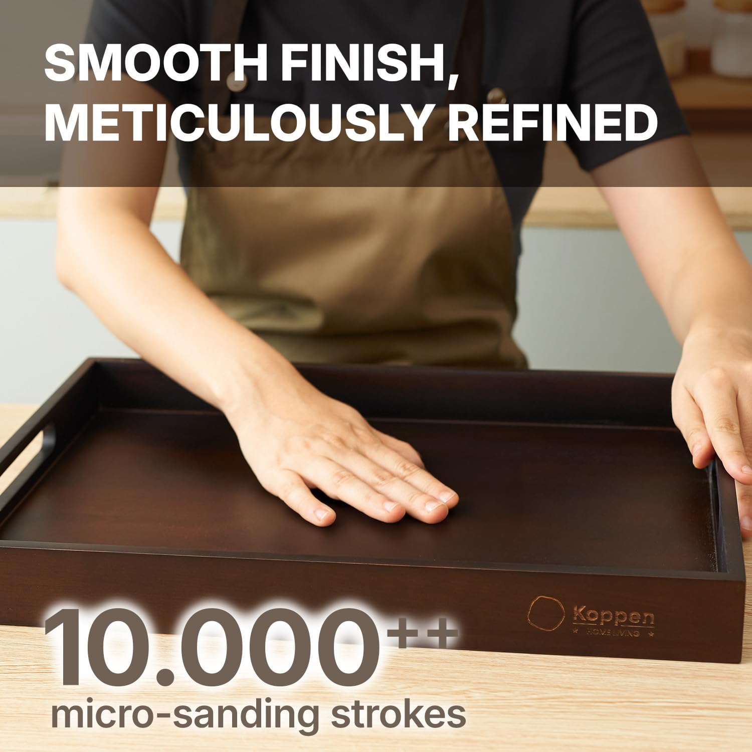 - [METICULOUSLY REFINED]: Our wooden serving tray is hand-finished through over 10,000 micro-sanding strokesāleaving the surface irresistibly soft, almost mental-like to the touch. Perfect as a wooden decorative tray, rectangle tray, or coffee tray for tray decor, it elevates food trays for eating, bed food trays for adults, serving platters and trays for parties, or party serving trays and platters.