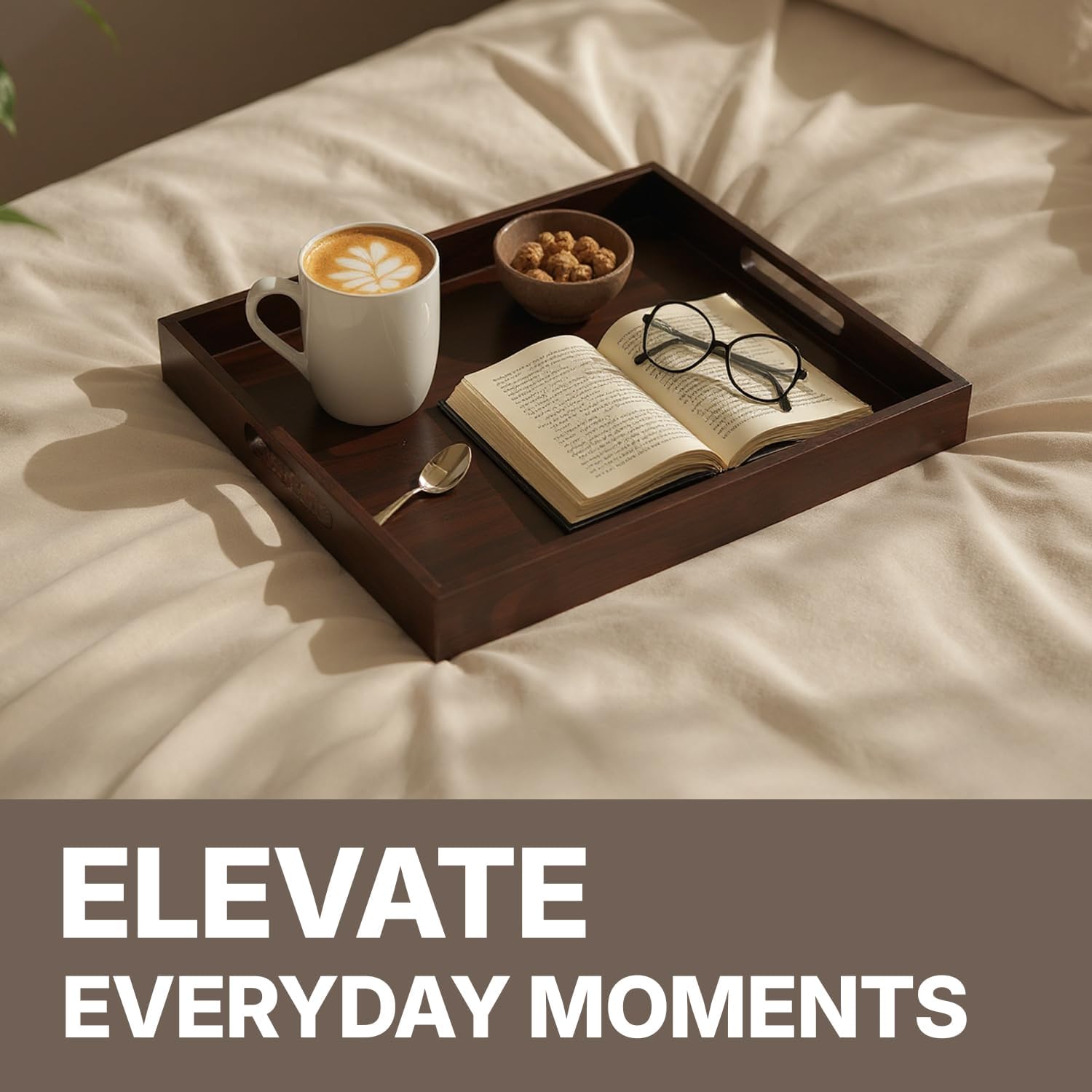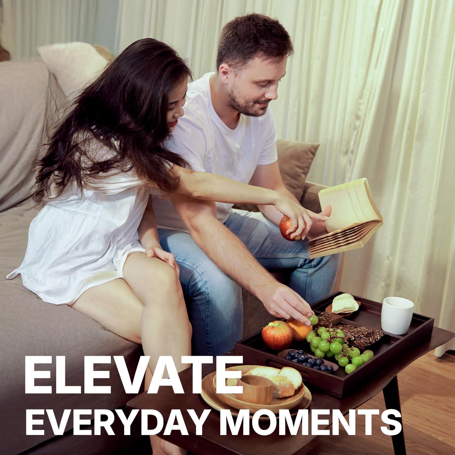 - [CAREFULLY SELECTED WOOD]: Crafted from premium timber, this wooden serving tray resists warping, ideal as a bed tray, coffee table tray, serving platter, or ottoman tray for living room. Use as a snack tray, tea tray, food tray, or bed table tray for trays for serving food. The wood tray with serving trays with handles ensures durability for party trays, wooden trays for decor, kitchen tray for counter, or serving trays and platters in any setting.