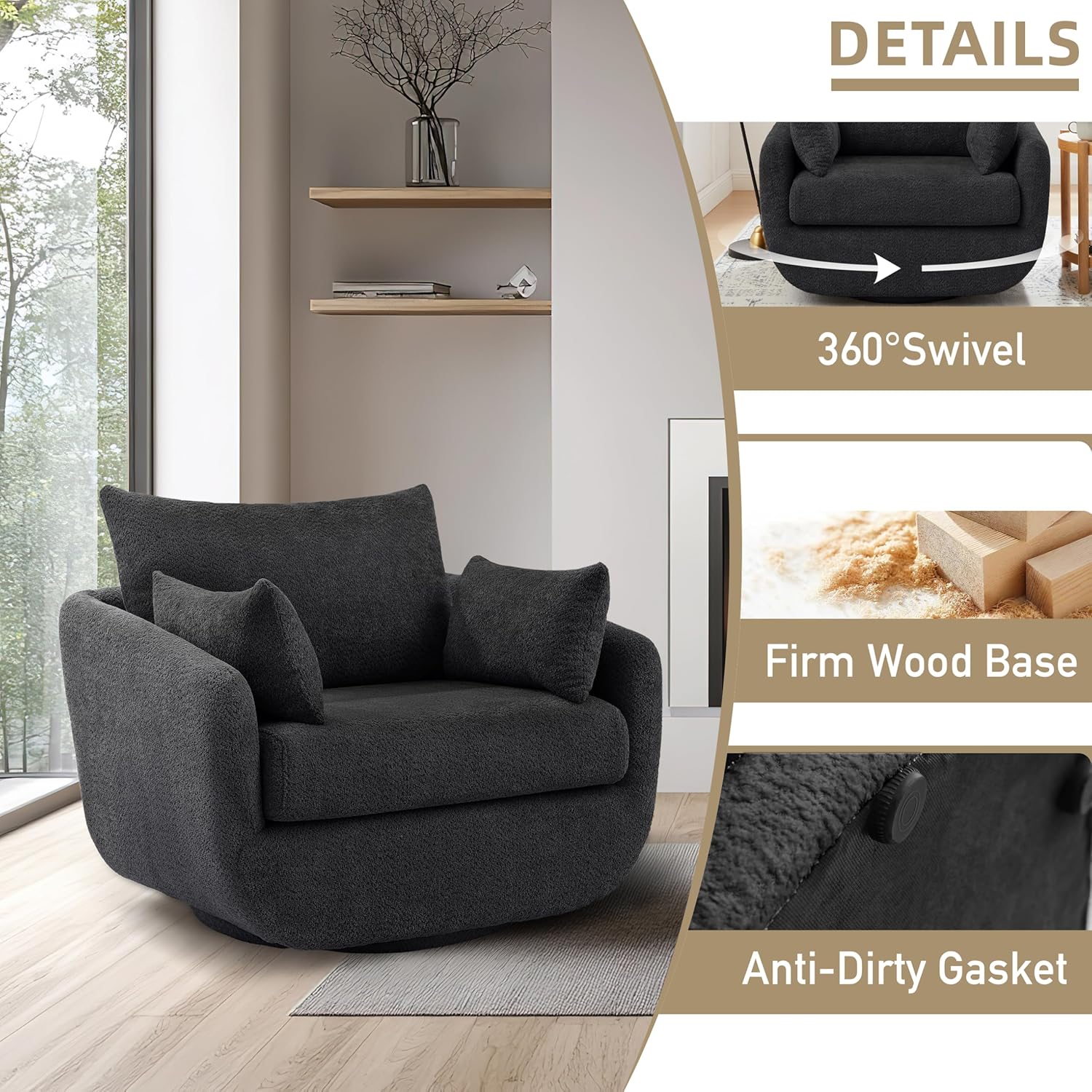360° Swivel Accent Armchair Set of 2, 39.3" Oversized, Sherpa Boucle Fabric Sofa Chair with Removable Back & Arm Pillows, Swivel Chairs with Cozy Soft Padded, No Assembly Required, Dark Gray
