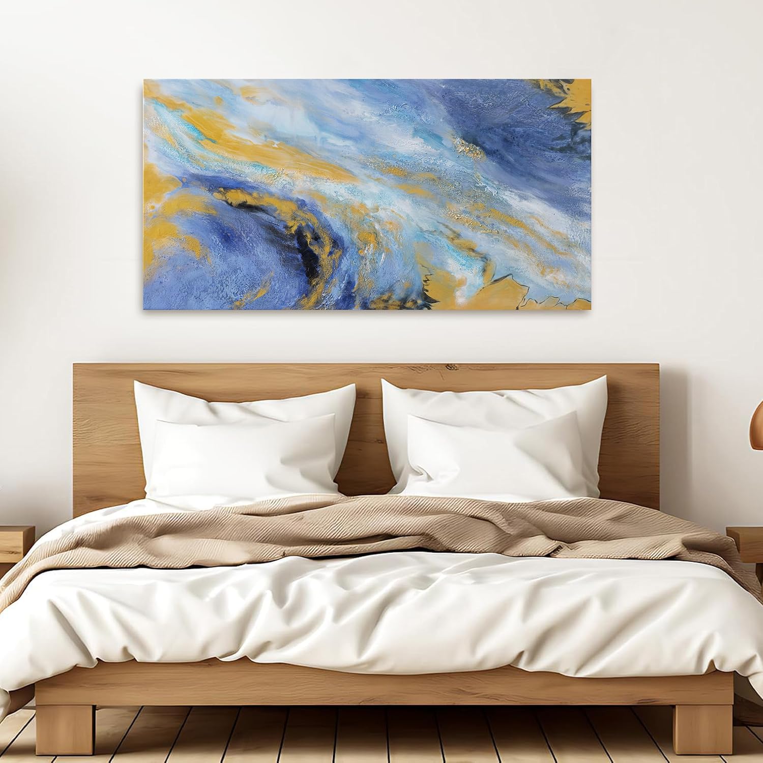 Canvas Wall Art Decor Blue Gold Wall Art Prints Large Abstract Wall Art for Living Room Art Work for Wall Decor Minimalist Azure - Gold Fluid Symphony Artwork for Walls Home Office Decor 20"X40"