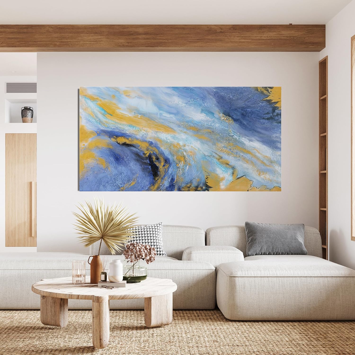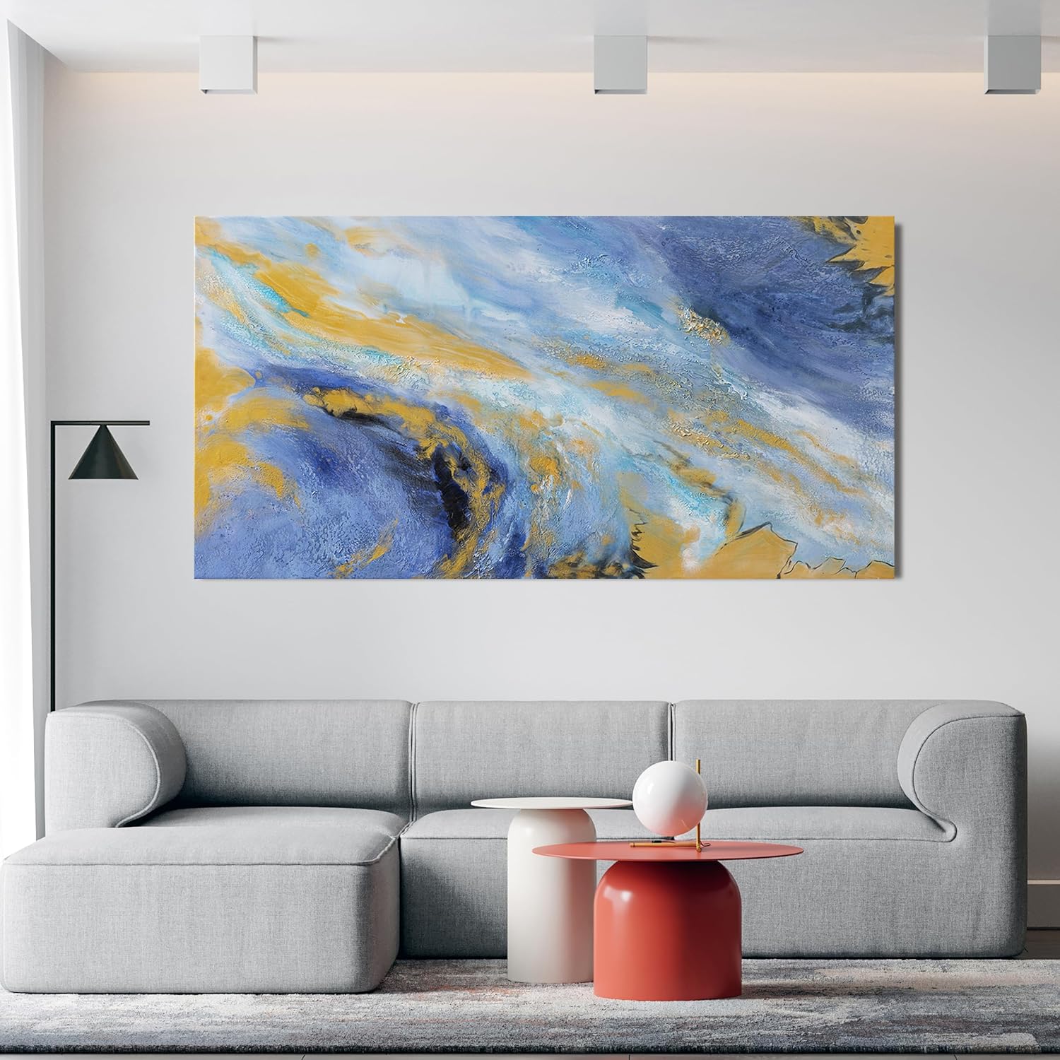 Canvas Wall Art Decor Large Blue Gold Wall Art Prints Modern Abstract Wall Art for Living Room Abstract Canvas Art Wall Decor Large Artwork for Walls Decorations Bedroom Office Decor 29" X 58"