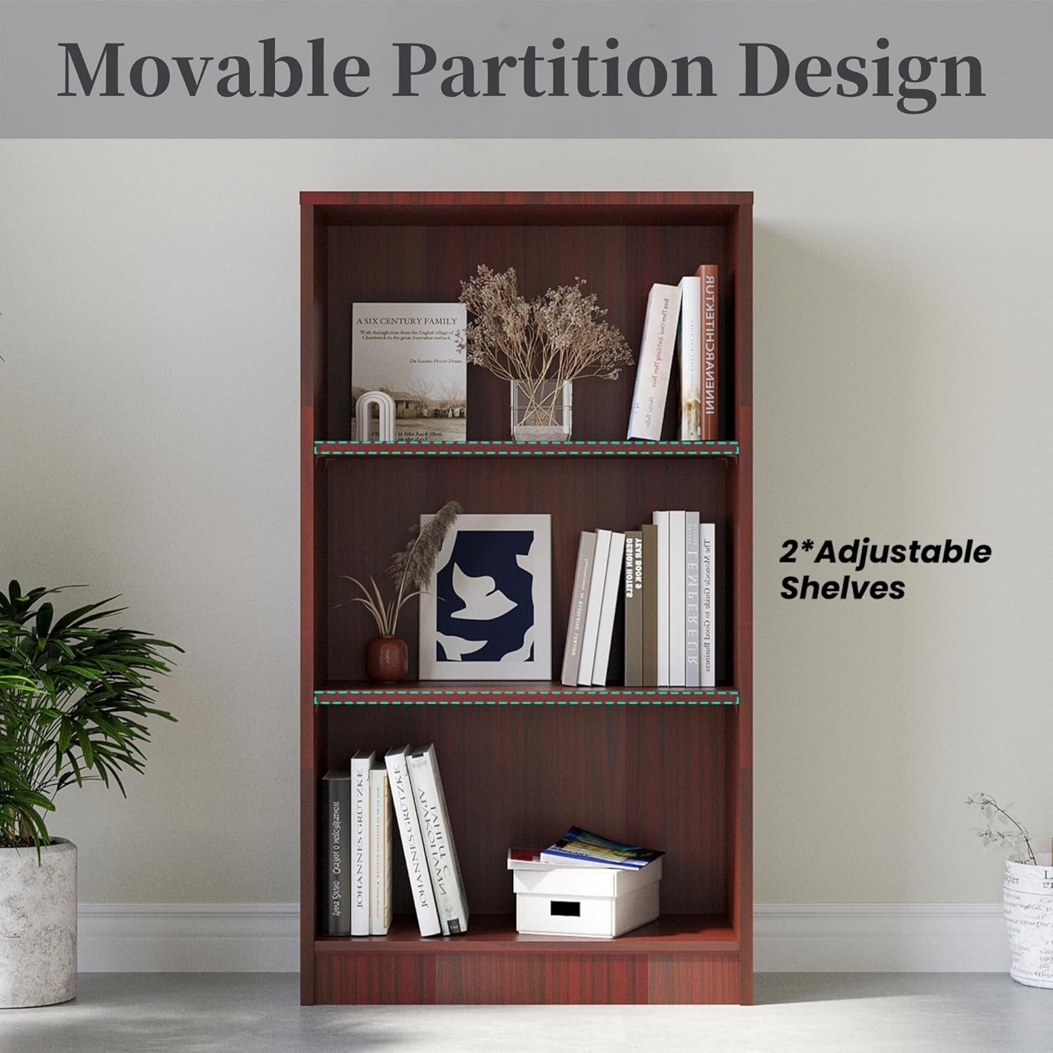 Bookshelf, Open Modern Bookshelf, 3 Shelf Bookcase with Freestanding Display Storage, Wooden Book Shelf for Bedroom, Living Room, Dinning Room, Office,Deep Brown