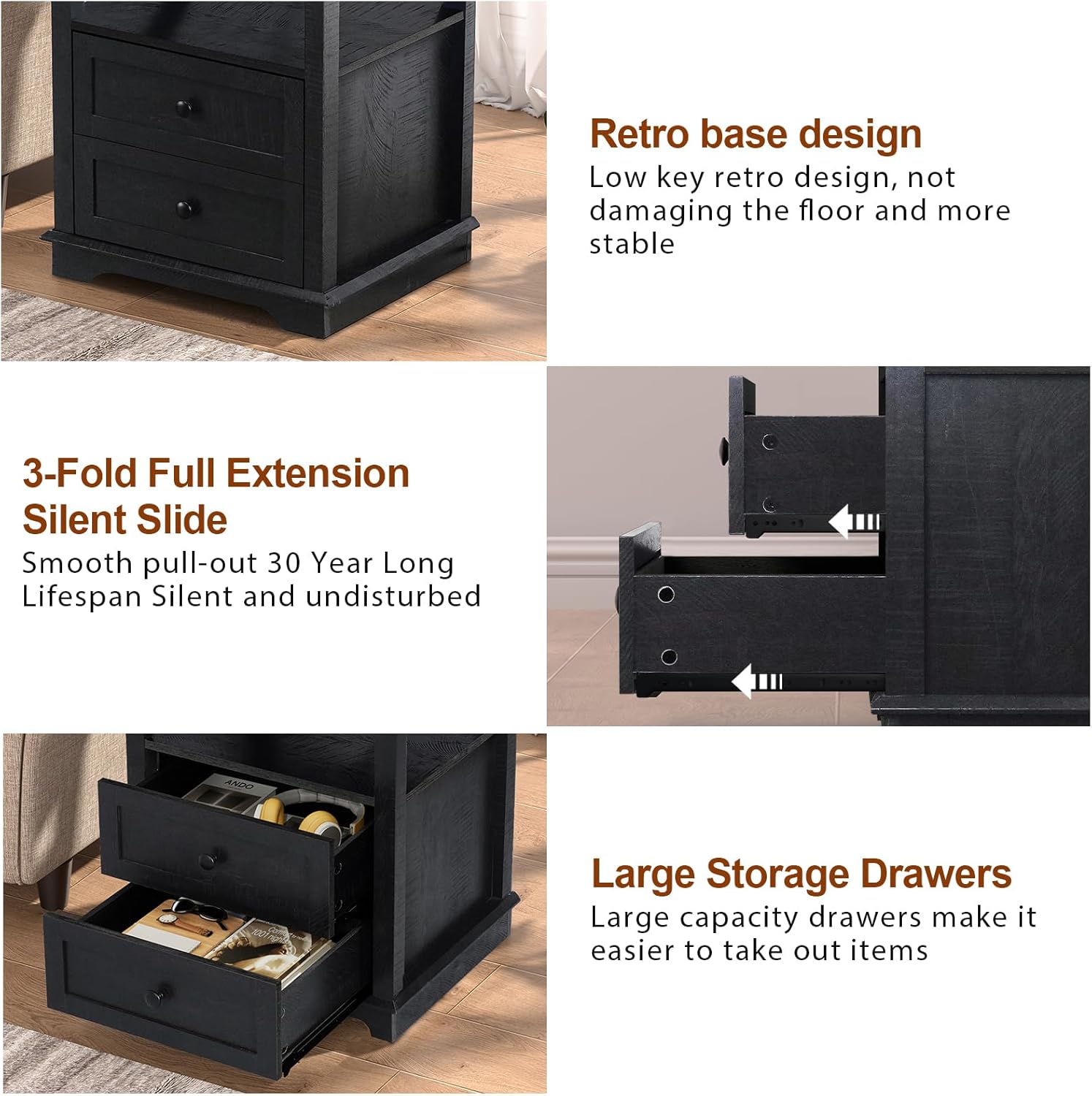 - Multi-scenario application: This large end table can be a bedroom nightstand, a sofa side table or a simple storage cabinet. When not charging, with exquisite decoration, it can also be a bright corner of your home.