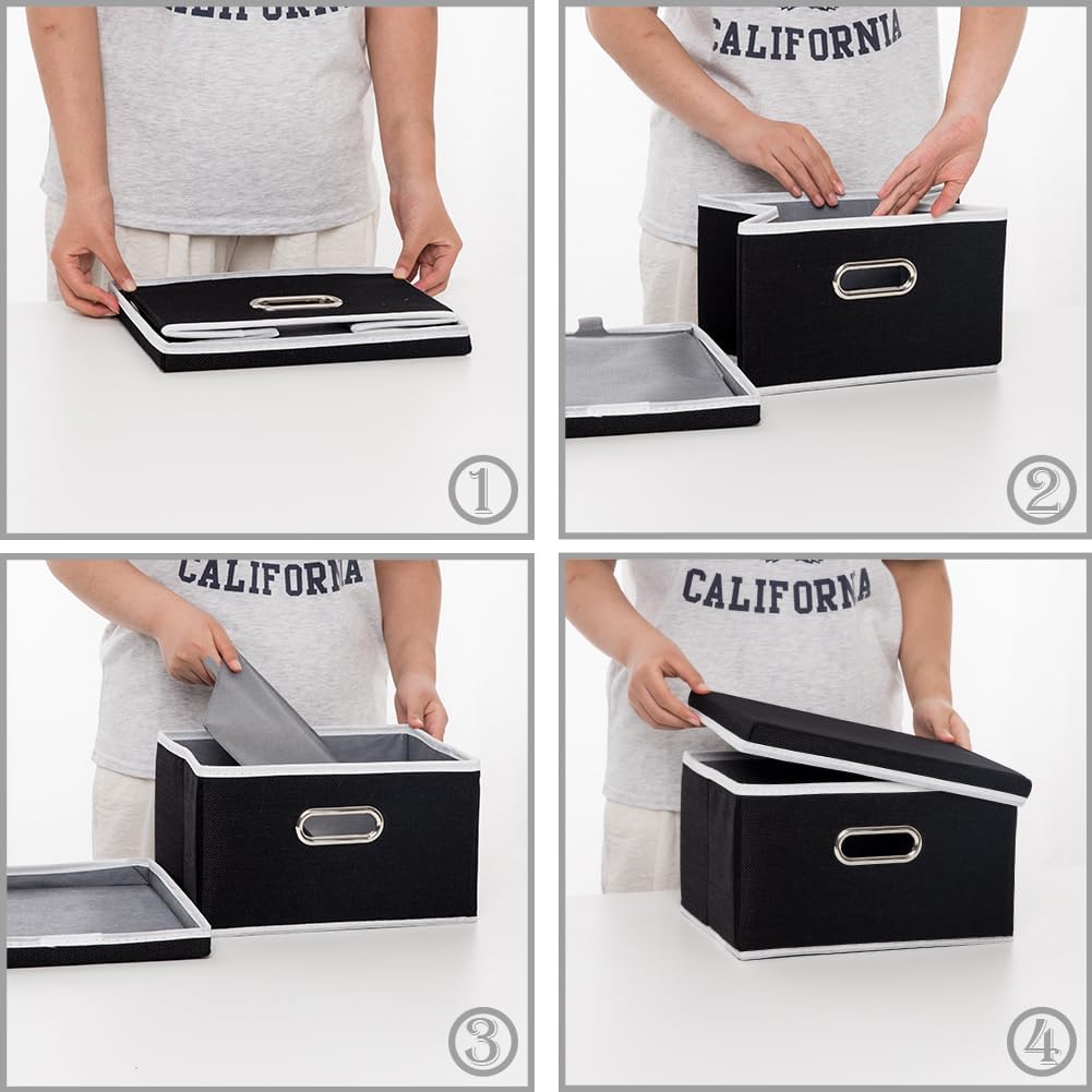PRANDOM Storage Boxes with Lids [3-Pack] Fabric Collapsible Storage Bins Organizer Containers Baskets Cube with Cover for Home Bedroom Closet Office Nursery Black(11.4X8.6X6.7