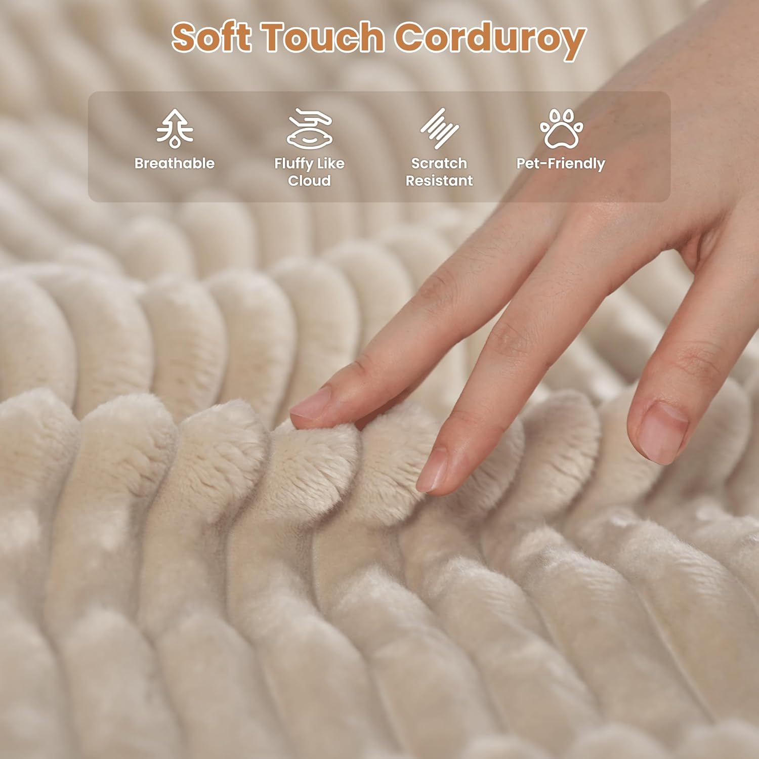 - Cloud Plush Corduroy: Exquisite and luxurious plush corduroy fabric offers constant softness and comfort, with its unique cloud-like fluffy texture and luster standing out. Don't worry if your pet likes to paw at the sofa, the plush corduroy fabric is anti-scratch and can easily allow you to remove clumps of hair
