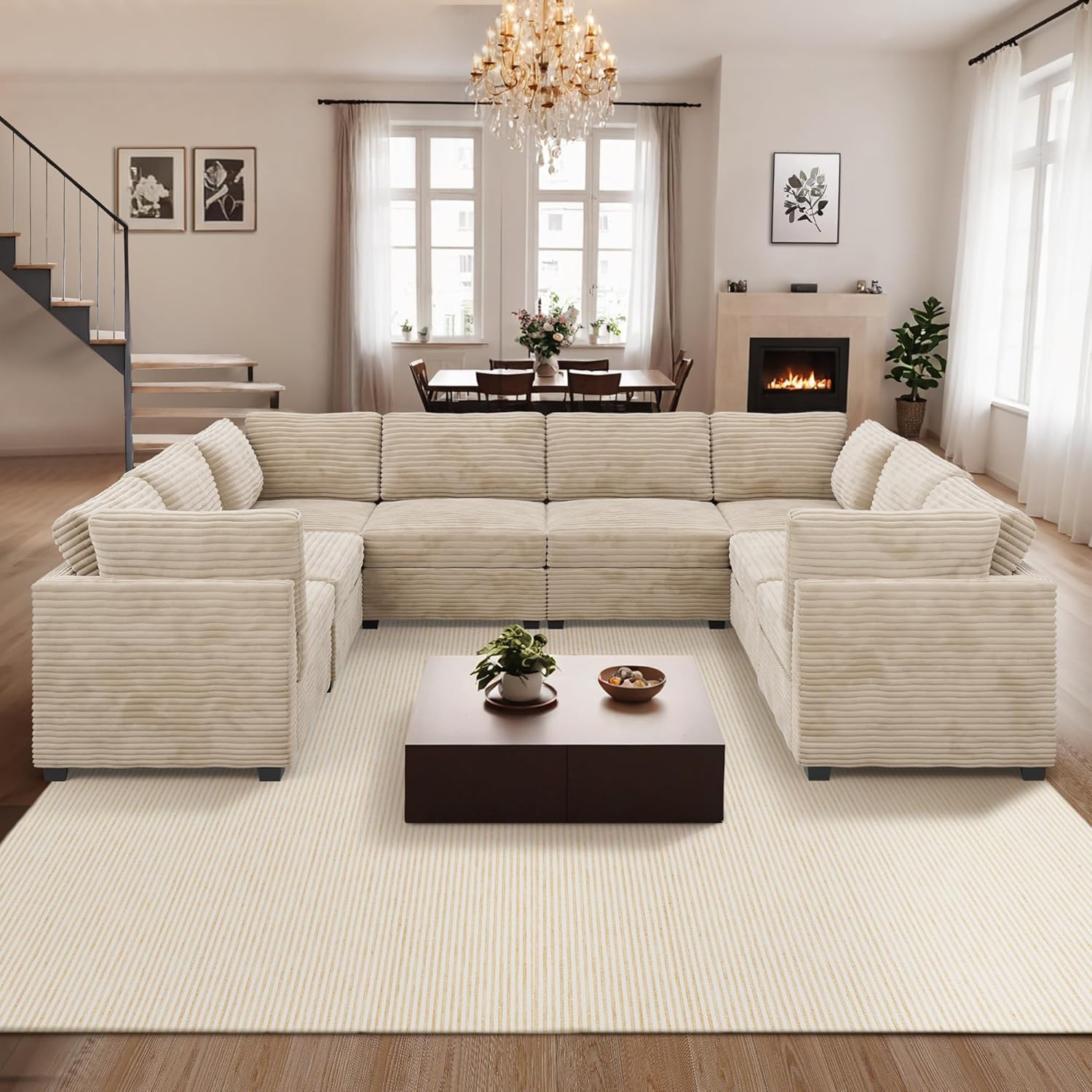 ovios Sectional Sofa Couch with U-Shape Chaise Oversized, Comfy Modular Cloud Couches with Deep Seat, Modern Upholstered Plush Corduroy Sofas Set for Living Room, 8-Seater, Beige
