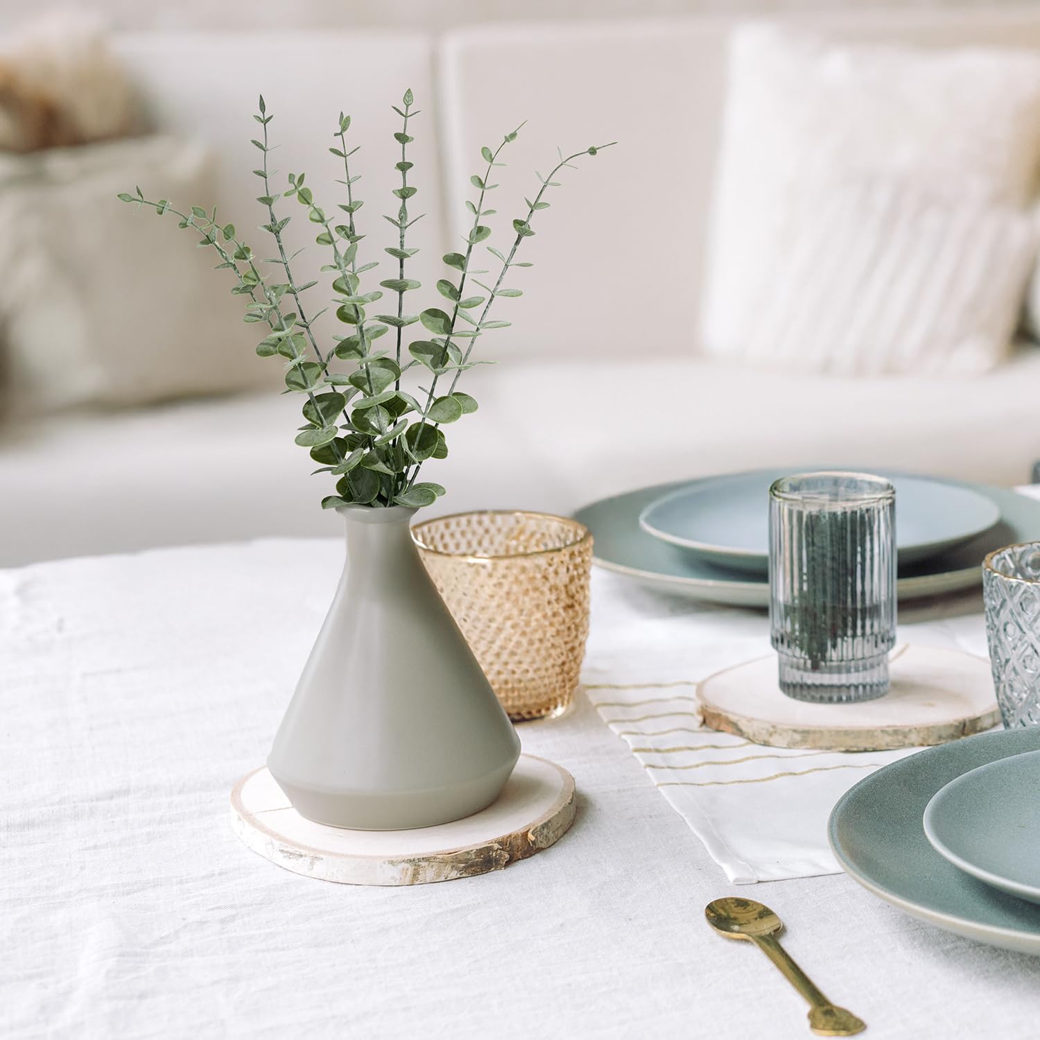 - Suitable for Any Occasion: The eucalyptus stems can be used alone in vases to create a minimalist look or mixed with fresh and dried flowers. Ideal for home decor, wedding bouquets, table centerpieces, farmhouse arrangements, seasonal wreaths, or party backdrops. Whether itâs Christmas, baby showers, or a cozy dinner party, these fake eucalyptus stems complement any style