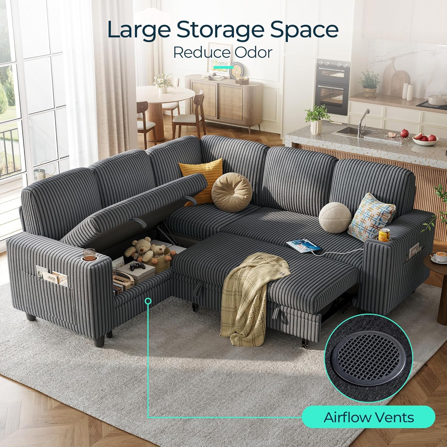 - Modular Sectional Sofa with Storage: LINSY HOME modular sectional sofa can be customized to fit your space needs with your sofa bed combinations, offering unlimited combination options. Our sofa beds are equipped with storage space for you to organize your space, you can store blankets, pillows, toys, miscellaneous items, etc., and store your daily items in a hidden place