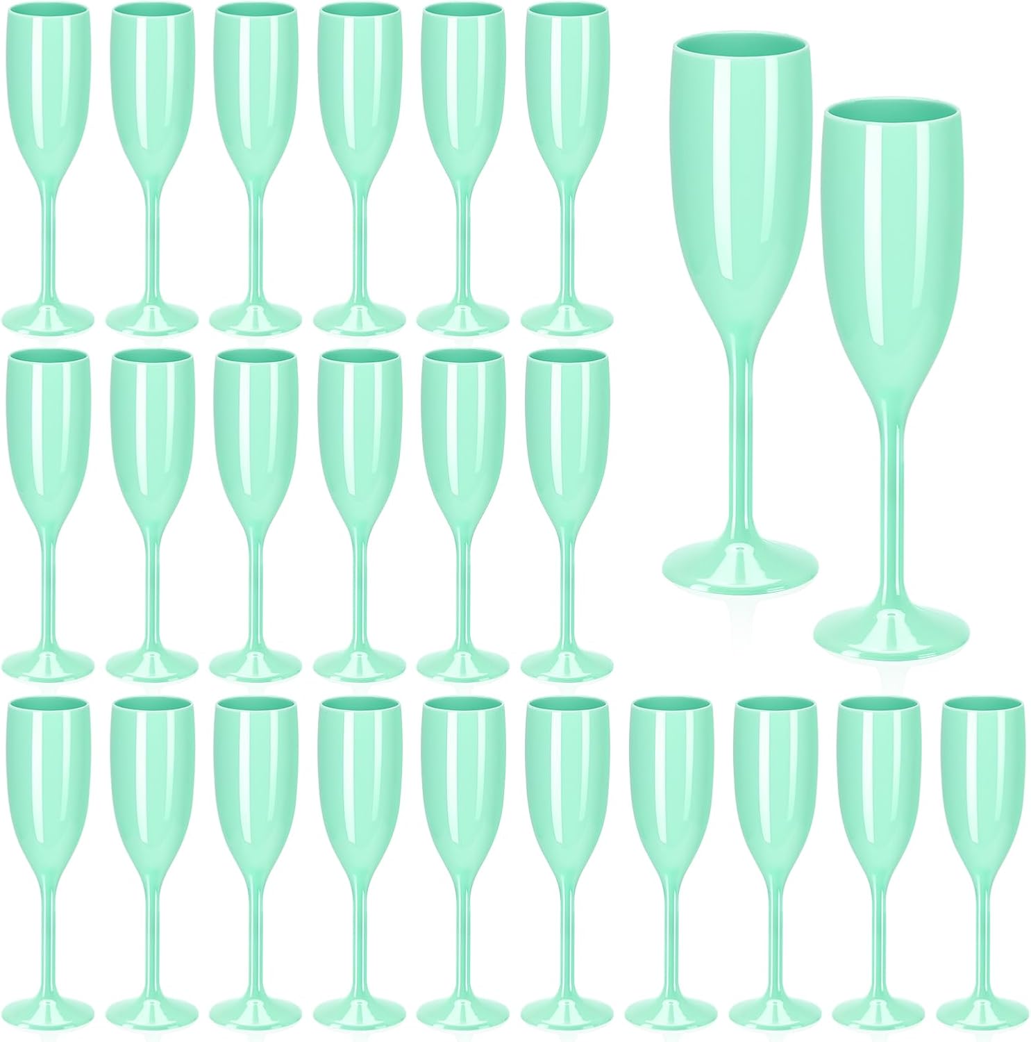 XUWAIDSGN Acrylic Champagne Flutes Toasting Glasses Unbreakable Mimosa Bar Reusable Wine Glasses Vintage Champagne Flutes Stemmed Drinking Cups 5.4 OZ for Christmas Birthday (24, Mint Green)