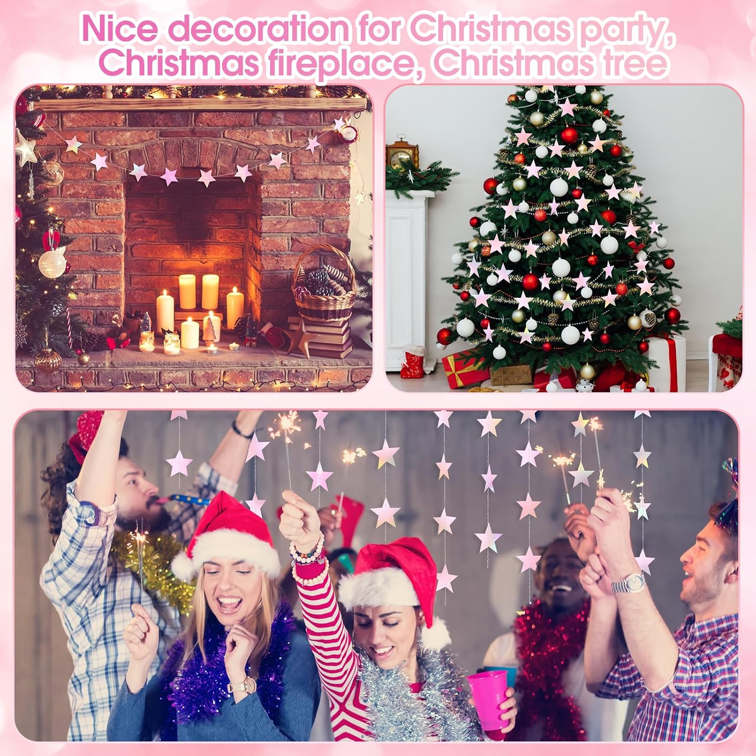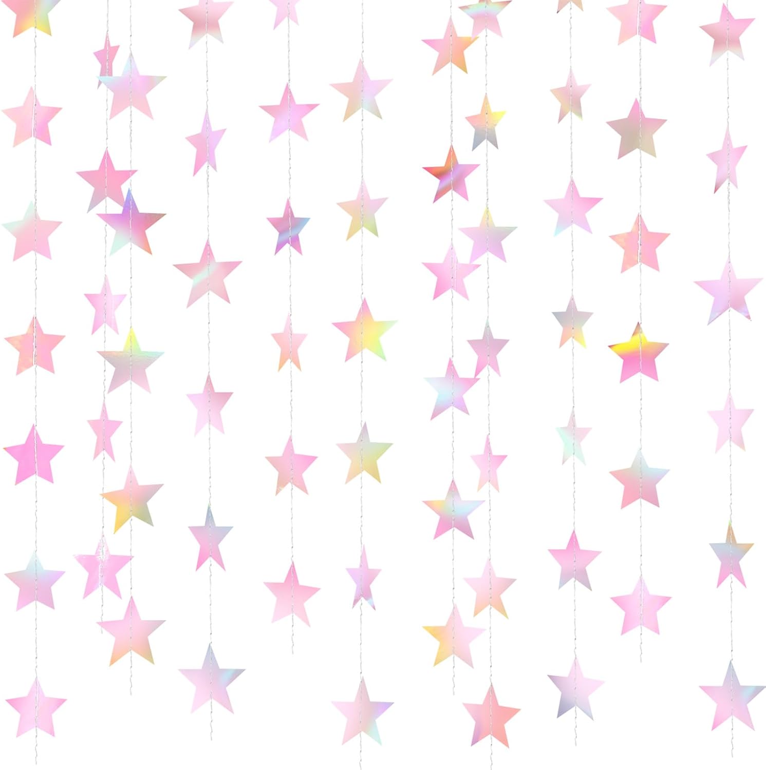 Patelai Glitter Star Garland Banner Decor 130 Feet Star Hanging Bunting Banner Twinkle Backdrop for Homecoming Classroom Wedding Birthday Halloween Christmas Party Supplies(Iridescent Pink)