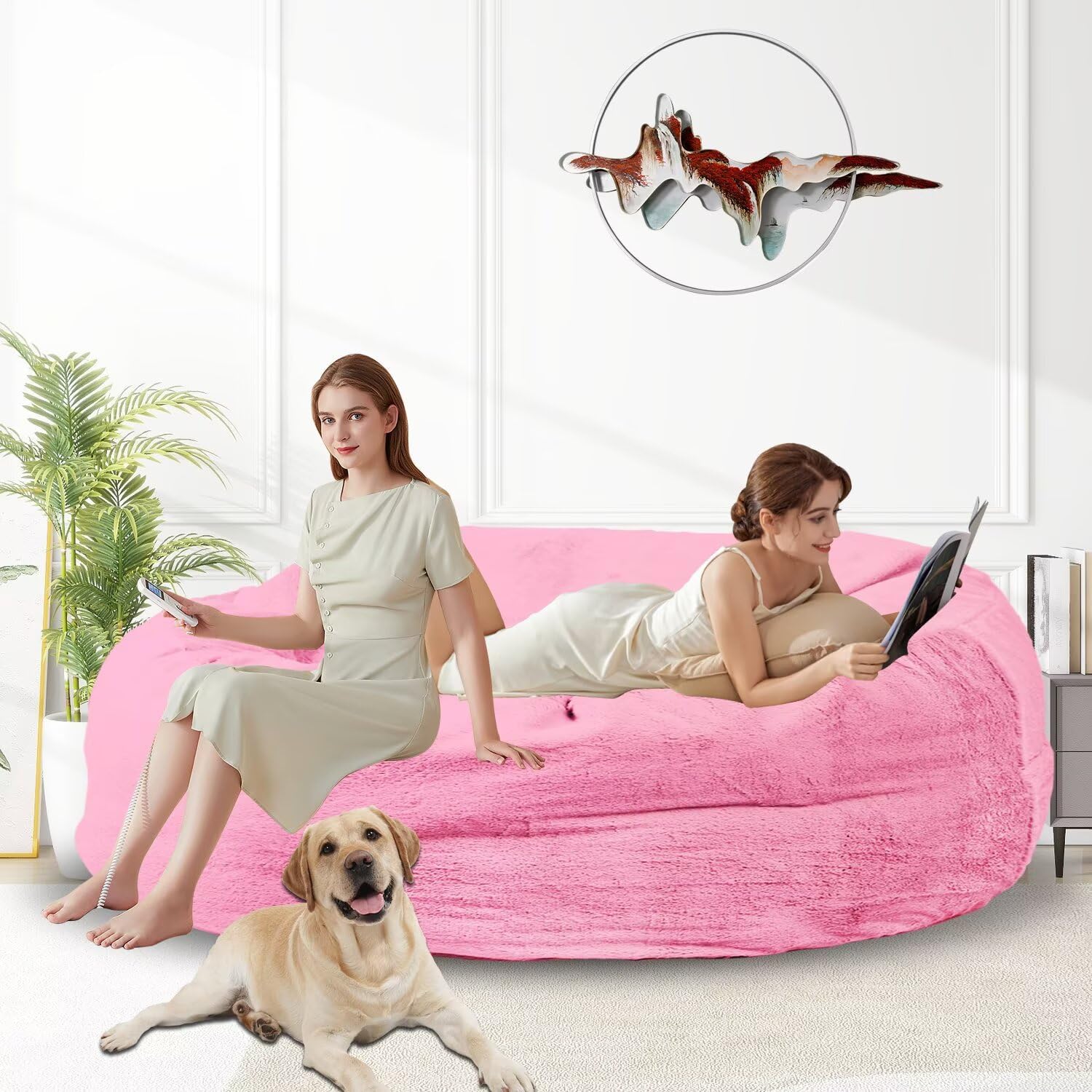 Bean Bag Chair for Adults 6FT,Soft Removable Cover for Teens/Girls Bedroom,Fluffy Giant Round Floor Beanbag Lounger Chairs (No Filler,Pink)