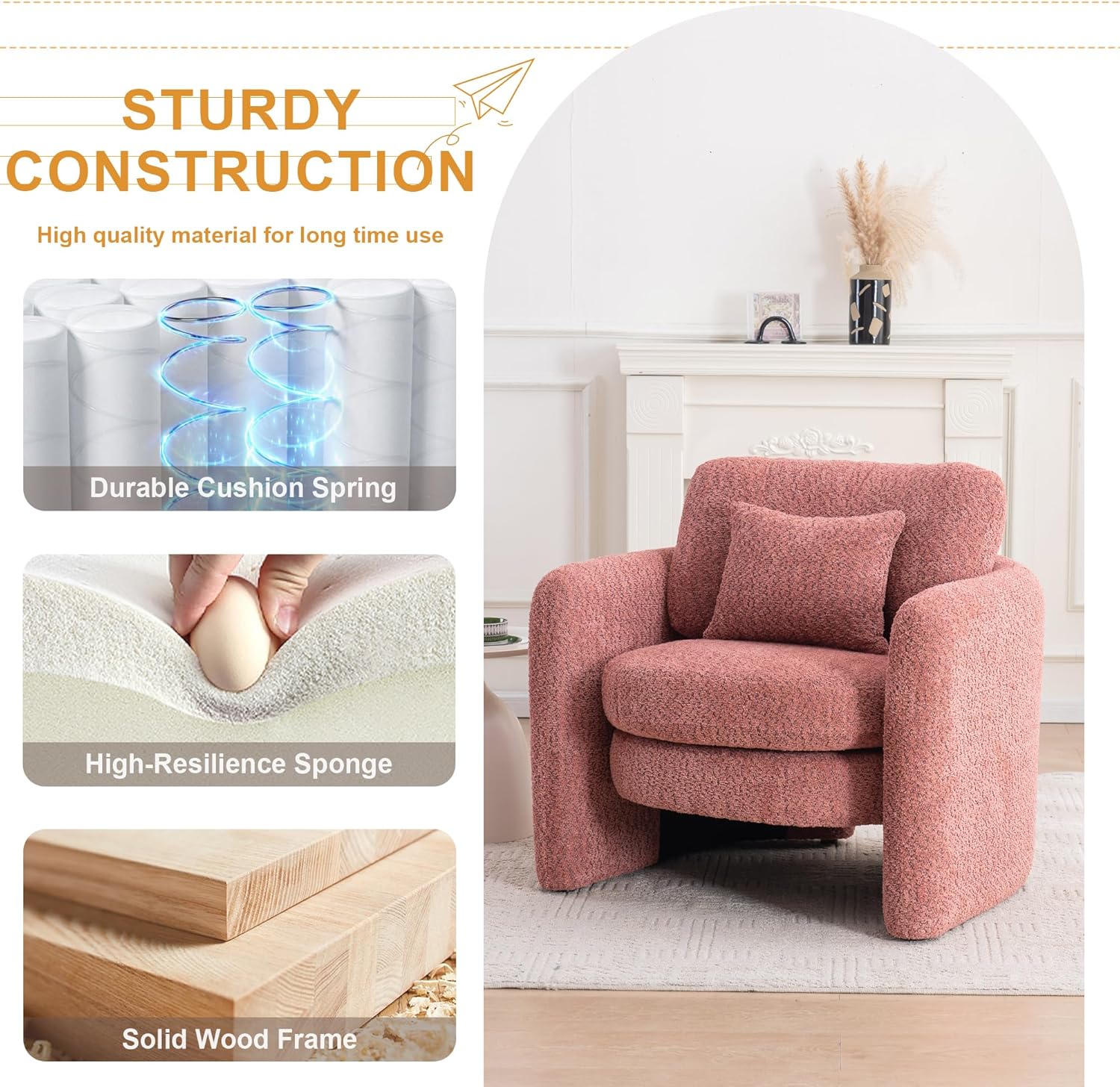 Chenille Accent Armchair Oversize Upholstered Barrel Comfy Modern Round Lounge Sofa Chair with Pillow Cozy Reading Chairs for Apartment,Office,Living Room,Dining,Makeup,Club,Pink