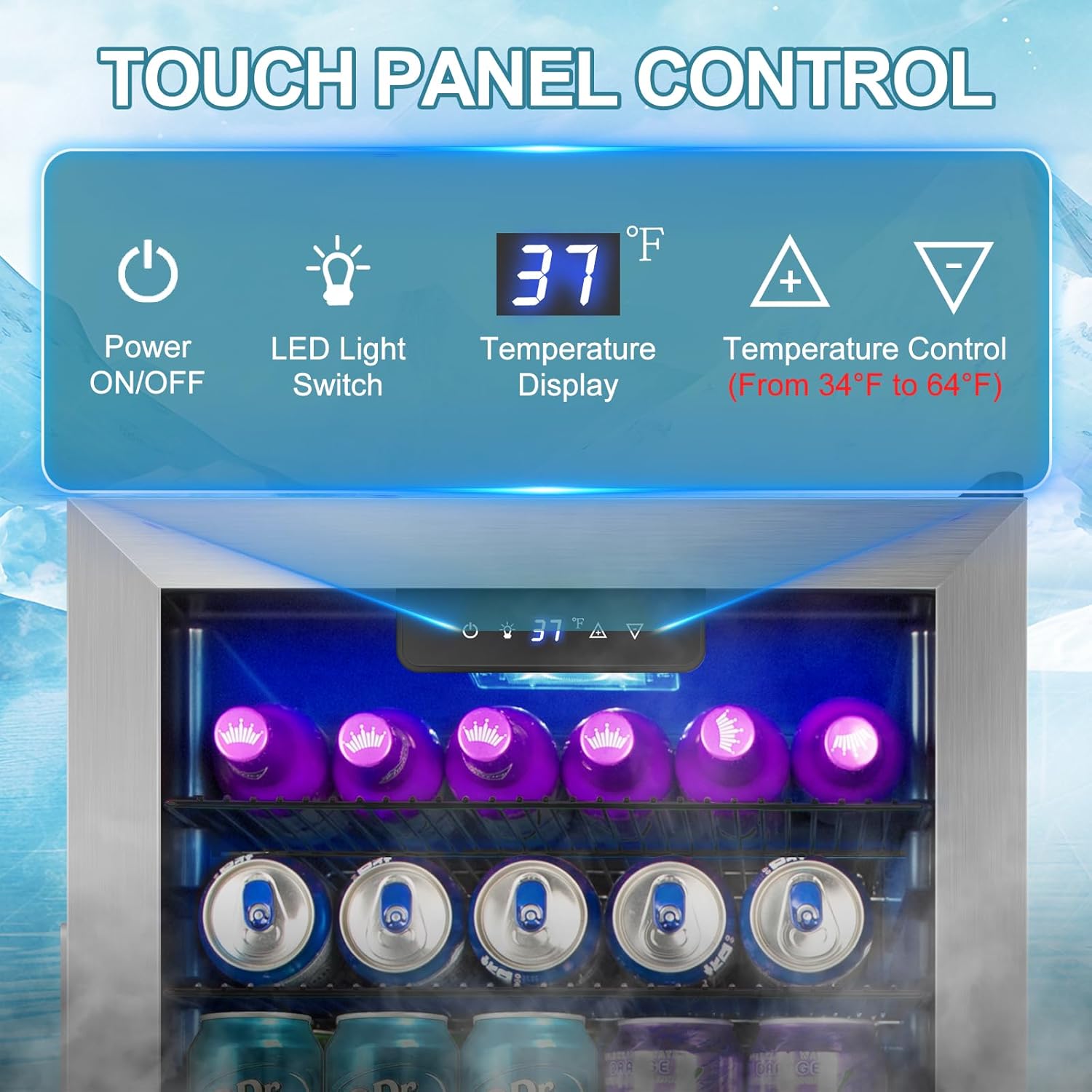 - SMART TOUCH CONTROL PANEL: The mini beverage fridge features a user-friendly touch control panel for easy temperature adjustments (34° Fā64° F), giving you full control over your cooling experience and complementing modern lifestyles.