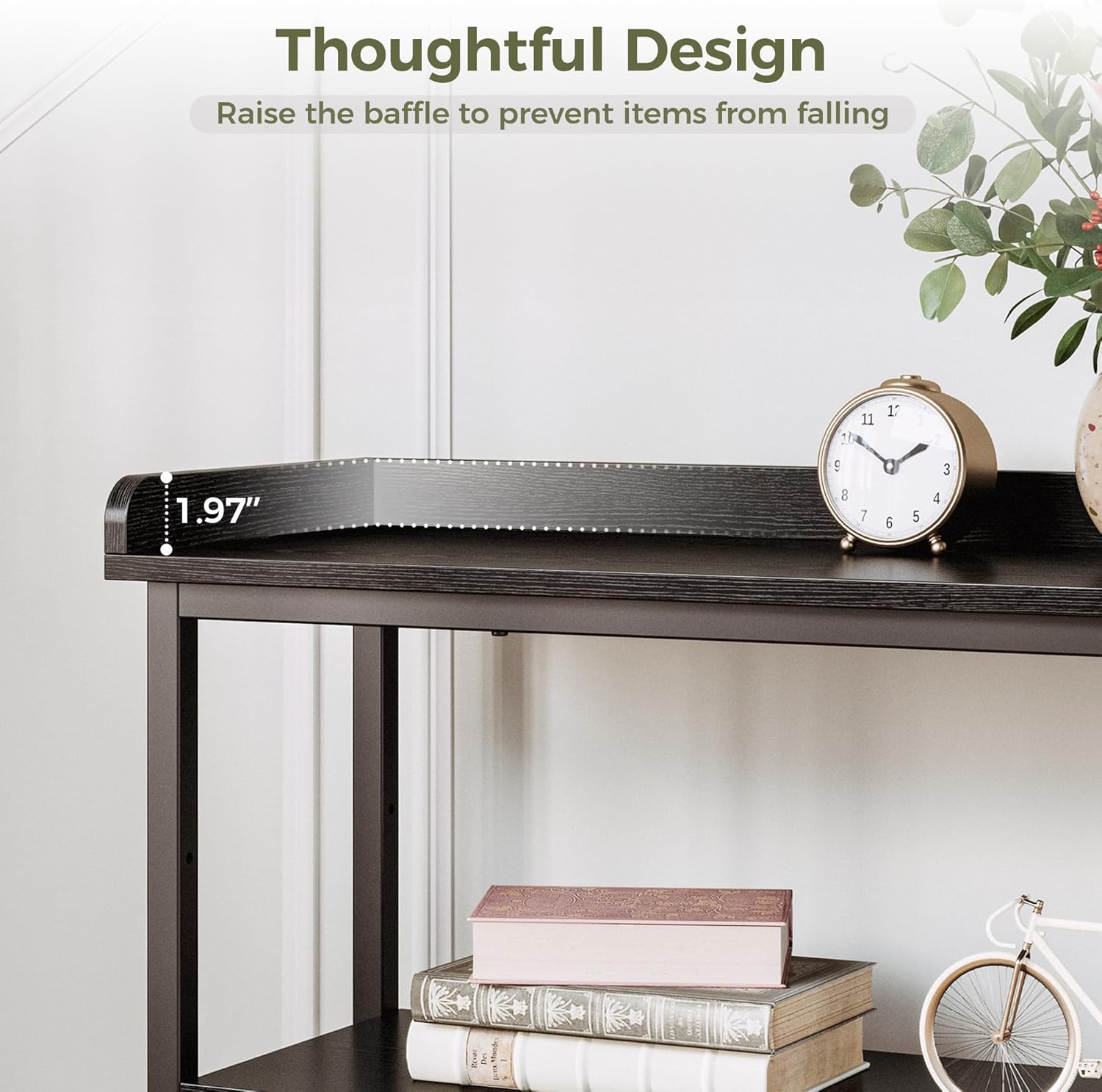 - Careful Design: More than other entryway tables , IRONCK entryway table has added a baffle design on the top to hang umbrellas on it, it also prevents items from falling