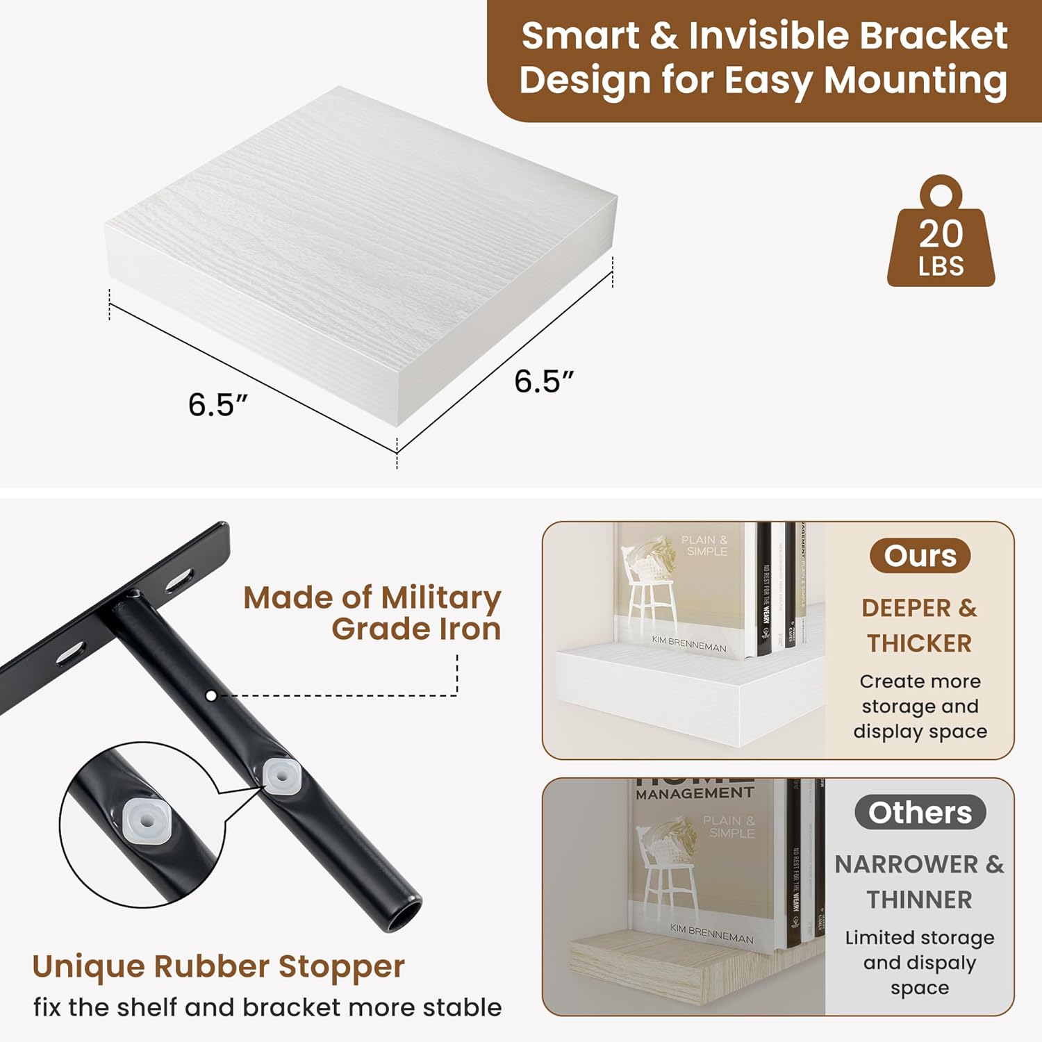 fuqing Floating Shelves for Wall, Bathroom Shelf Wall Mounted for Storage, Shelves with Invisible Bracket for Bedroom, Kitchen, Living Room, Farmhouse Small Book Shelf, 6.5 Inch Set of 3, White